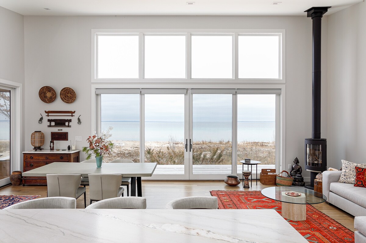 令人驚嘆的現代房源,位於密歇根湖大特拉弗斯灣邊緣,擁有150英尺的原始私人海灘。在我們的新房子裡恢復您的身體和精神,這座房子坐落在2英畝的沙地林地上,可通往很棒的自行車道和遠足路徑。這個房源配有溫暖的地暖和高速WiFi ,可以成為您工作或創意思考的聖地。享受現代燃木壁爐和戶外三溫暖、Peloton自行車、瑜伽用品和非凡的湖景。