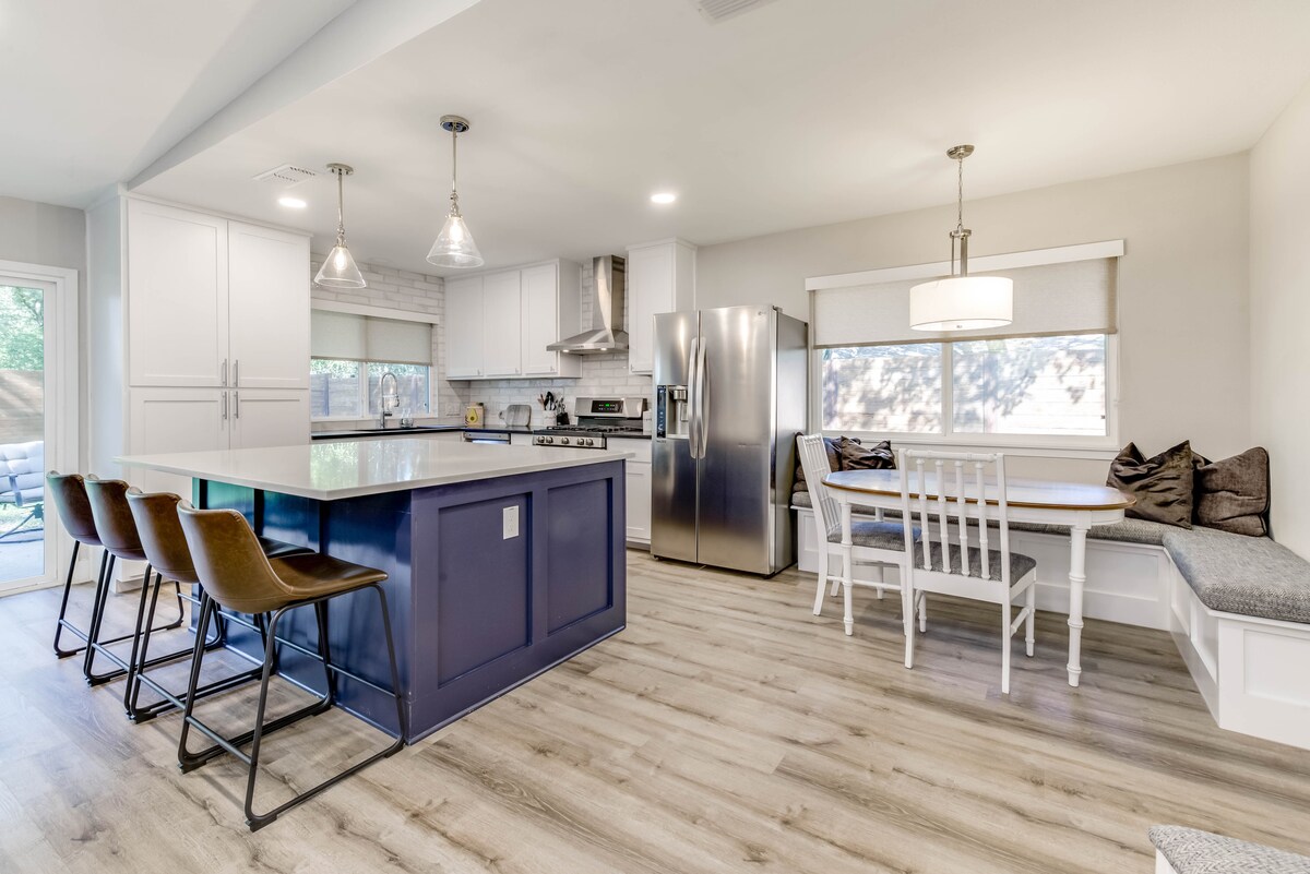 探索我們充滿活力、全新翻修的北奧斯汀度假屋!坐落在城市中最安全、最適合家庭入住的街區!每個房間都以俏皮的裝飾來慶祝奧斯汀的獨特魅力。我們的黃金位置非常適合輕鬆前往景點,但沒有繁忙城市的喧囂,這個天堂非常適合尋求熱鬧、難忘住宿的家庭/團體。 ✿機場:27英里 穆✿迪中心:20 英里 ✿雷尼街:21英里 巴頓溫泉(✿ Barton Springs):21英里 濟爾克公園(✿ Zilker Park):21 英里 ✿Circuit Americas : 38 英里 ✿UT:20 英里