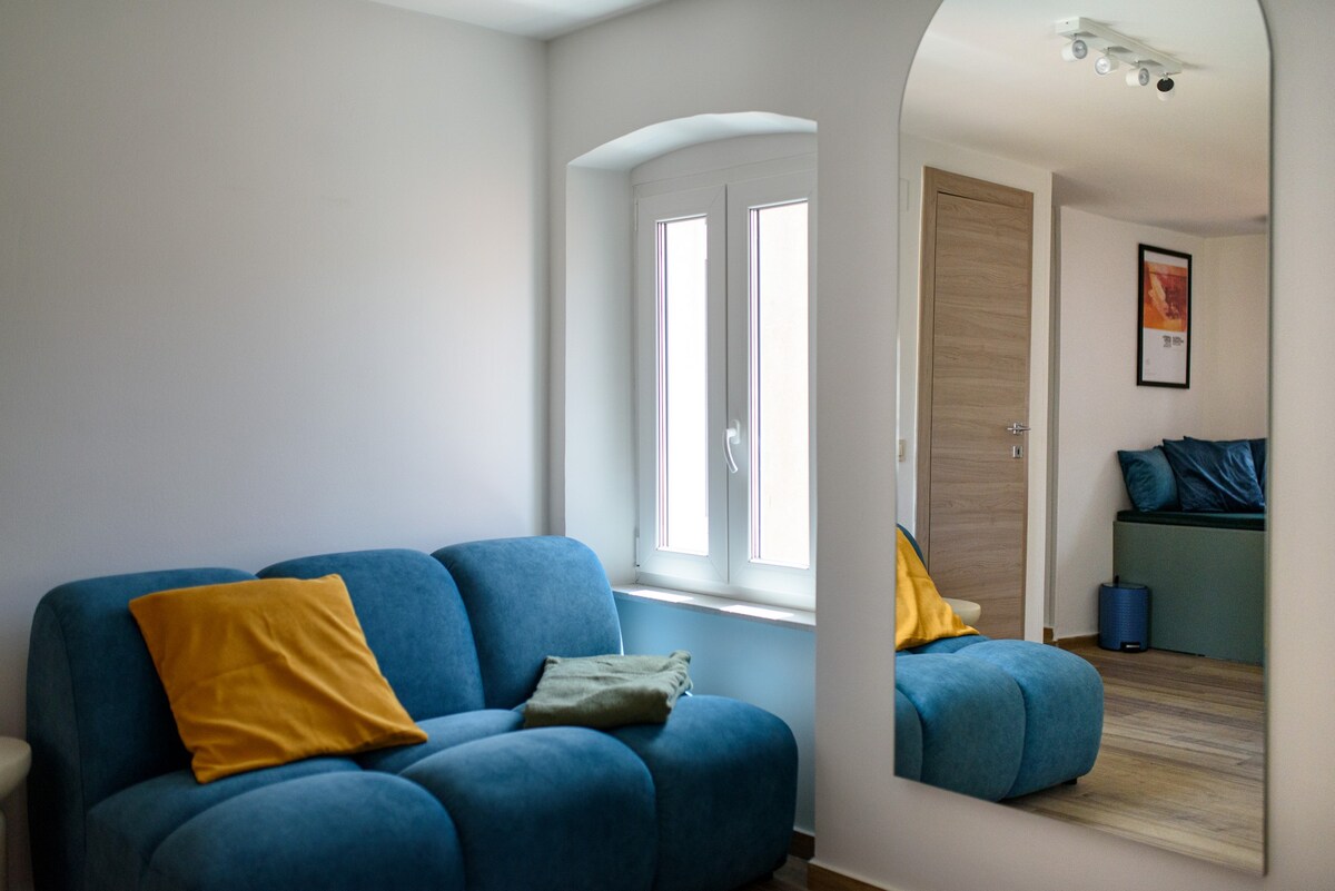 駕車抵達時必須通知。 公寓面積為50平方公尺,包括一間雙人臥室、廚房、客廳(配有沙發作為雙人備用牀)、浴室和兩個陽臺,可欣賞老城的美景。 許多樓梯可能是一個挑戰。免費停車位。