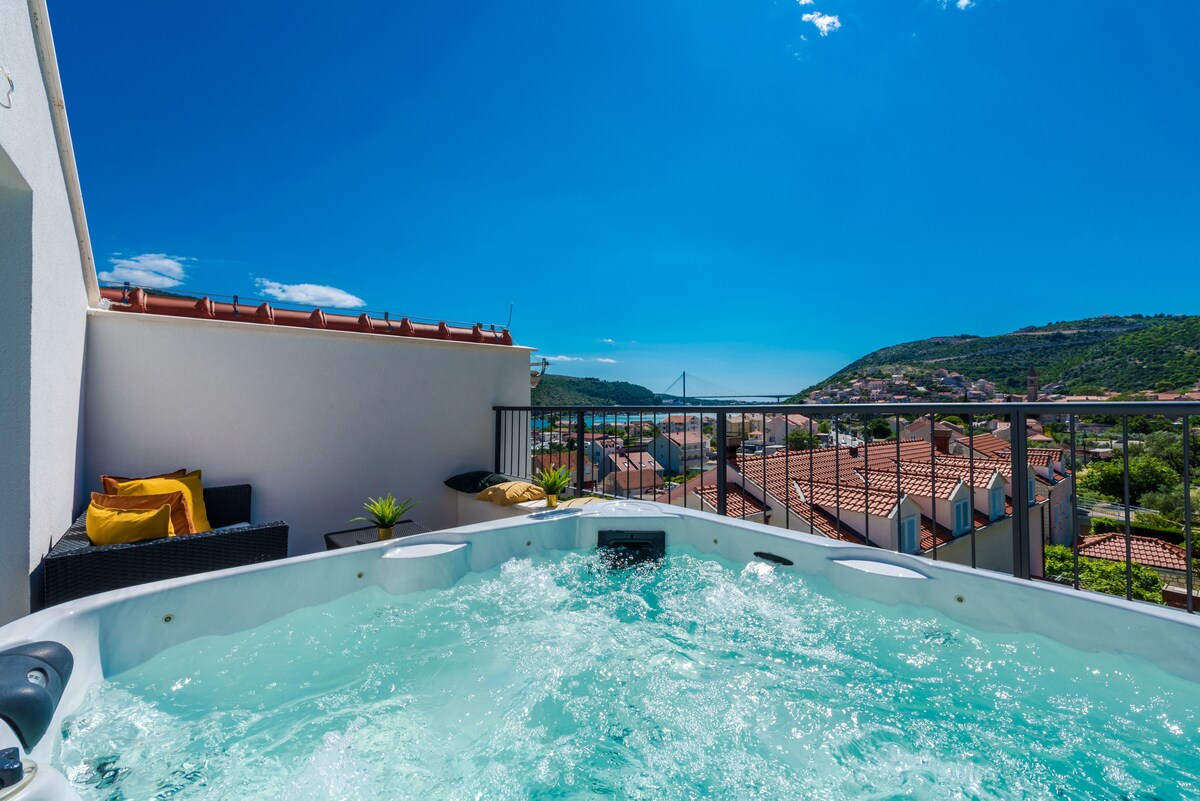 位置優越的優越舒適公寓,步行20分鐘和開車4分鐘即可抵達歷史悠久的杜布羅夫尼克舊城區和海灘。 美麗而現代化的公寓,您可以在露台上放鬆身心,旁邊是戶外夏季廚房,配有烤肉。 歡迎!超市距離公寓450公尺,巴士站距離公寓50公尺,咖啡吧、快餐、麵包店距離50公尺,計程車站、報攤、貝爾維尤海灘900公尺和拉帕德灣900公尺。