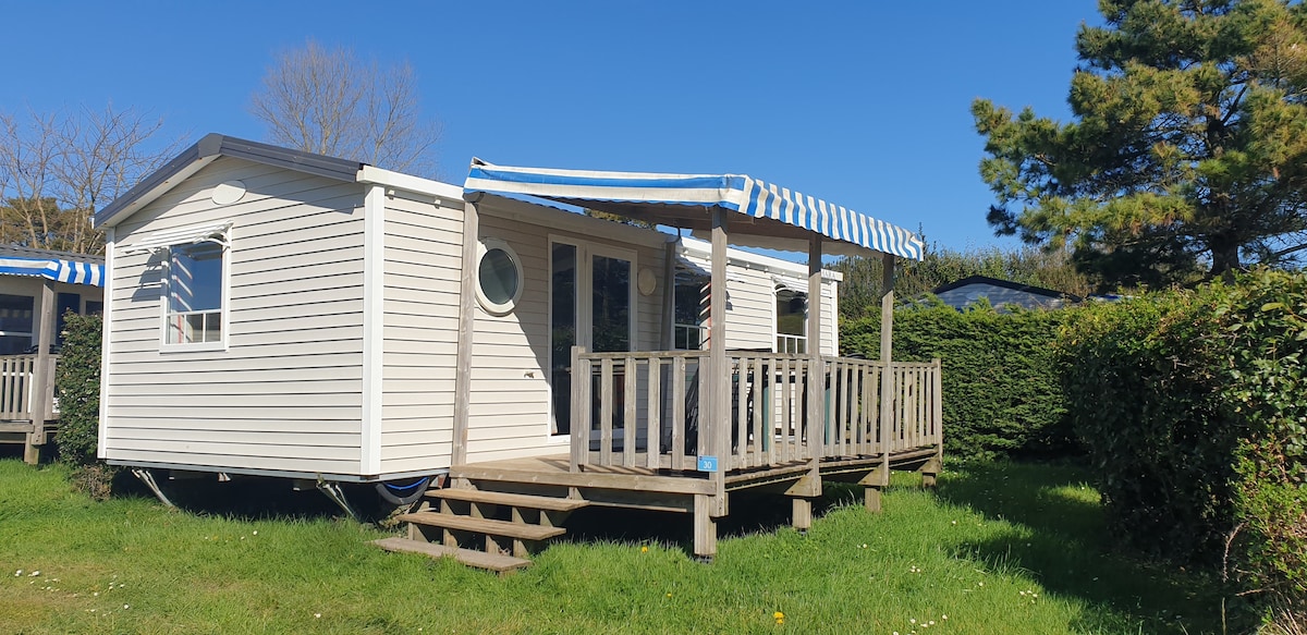 來這個獨特而安靜的地方放鬆身心。 這間雙臥室移動房源在私人空間內安靜,與家庭、好友或浪漫度假一起迎接您的到來。 它距離海灘200公尺,有20公裏的自行車道、步行道……長途步道等著您。 設備齊全的廚房、dolce gusto...蛋糕上的櫻桃,私人按摩浴缸比您根據您的願望更能放鬆身心! !