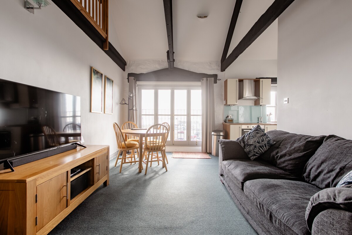 現代化的樓上公寓,地理位置優越,可探索西康瓦爾。 配有開放式廚房/客廳、獨立臥室、淋浴間和室外陽臺。 提供冰箱、烤麵包機/水壺、電視和WiFi。請注意,除了炊具外,還提供組合微波爐。 公寓提供私人停車位。 步行10分鐘即可抵達海灘和海岸小徑。步行/騎自行車前往聖邁克爾斯山(St Michaels Mount),乘坐火車前往聖艾夫斯(St Ives)或前往夕利群島(Isles of Scilly)。