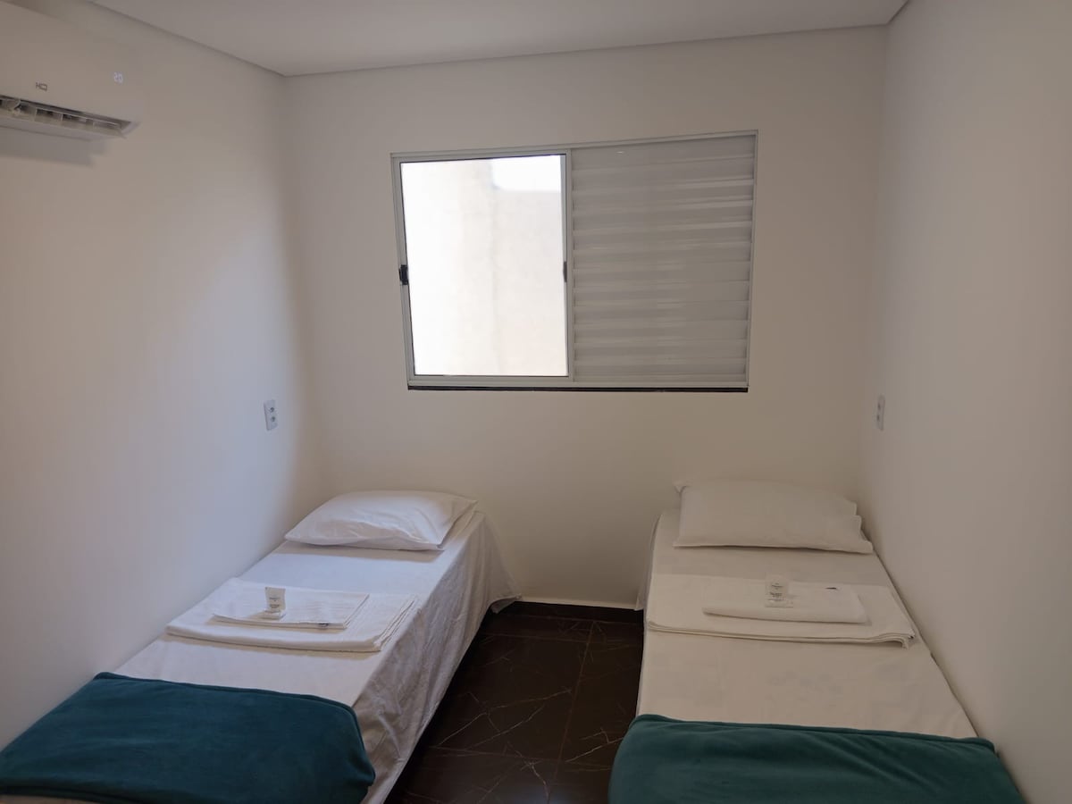 整套獨家住宅。 靠近UFMS、Arena Mix和Atacadão。 配備2張舒適的全新單人床。 房間配有新冷氣和小衣櫃。 廚房配有冰箱、爐竈和其他必需品。 桌子和4張椅子。 智慧電視。洗衣箱。 我們的目標是讓旅人感到賓至如歸。 最多可停放4輛車的空間。 前往機場、巴士和高速公路很方便。