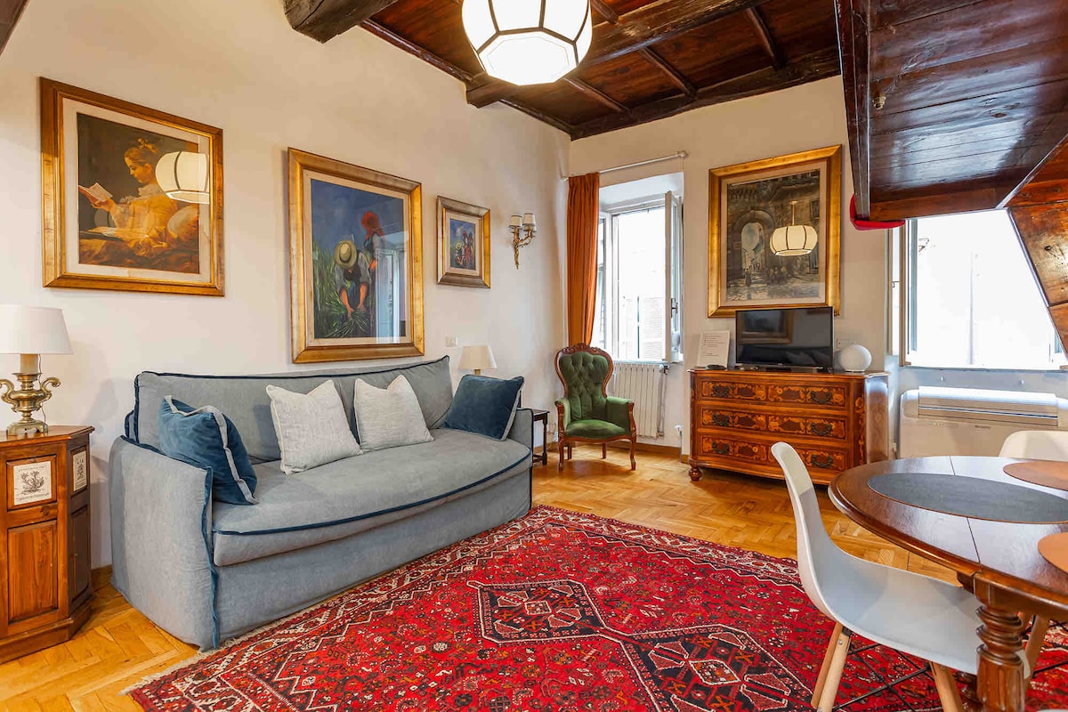 這間舒適安靜的公寓位於羅馬最具代表性和優雅的區域之一。由於它的中心位置,步行前往羅馬的大部分美景將非常容易和迷人。這是一間非常安靜的公寓,因為它面向大樓的內部,所以您可以在一天的城市遊覽後放鬆身心! 公寓非常靠近西班牙臺階,地理位置優越,步行即可探索城市景點,包括特雷維噴泉、羅馬競技場和羅馬廣場。