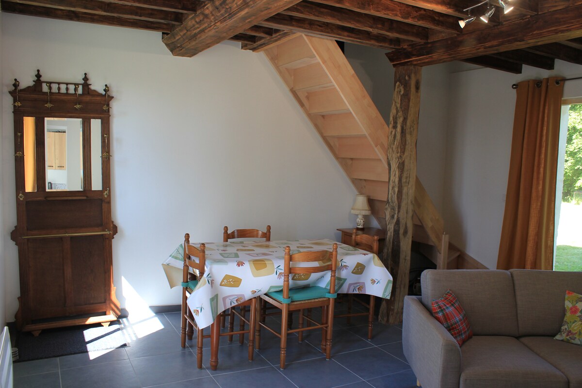 Attenant à la maison principale un logement de plein pied comprenant : un grand salon avec un lit une personne, une chambre avec un lit 140, une cuisine et une salle de bain avec douche et WC. Extérieur : une petite terrasse avec salon de jardin et barbecue. Espace dédié aux véhicules dans la cour intérieure close. La propriété se situe au bout d'un chemin privé. 1km 8 d'Isigny sur mer, tout commerce. 5km de Grandcamp-maisy. Proche des plages du débarquement Omaha beach... De Bayeux à Cherbourg.