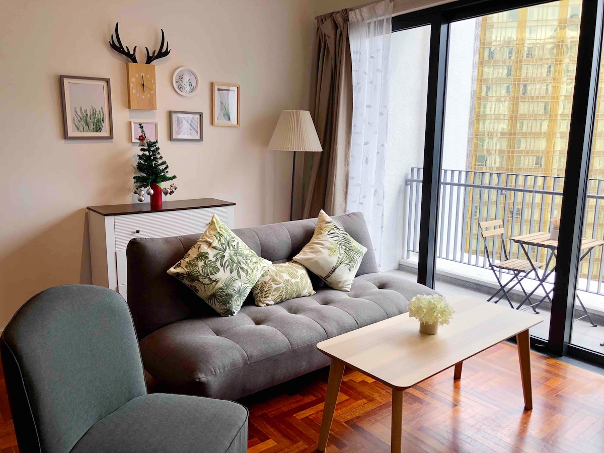 102-日式主题猫咪~适合远程工作者长居~3-5分钟步行到两个商场~公寓底楼有超市与餐厅&咖啡厅~