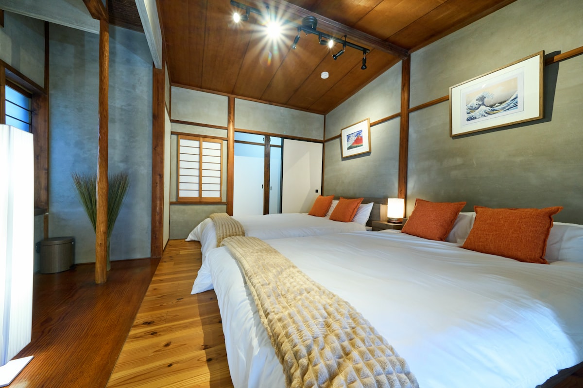 JR鶴見駅から徒歩4分。 日本旅館風の1LDK(52㎡)のお部屋で、最大4名様のご宿泊が可能です。 現代的でありながら、昔なからの日本的な雰囲気も感じれるお部屋です。 羽田空港から直通の京急鶴見駅からは徒歩8分のアクセスです。 JR線と京急線へのアクセスの良さは東京( 渋谷、新宿、浅草など)、横浜、鎌倉方面へのアクセスを便利にしてくれます。 寝室はグレーの漆喰壁が伝統的でありながら、モダンな印象を与えてくれ、日本情緒を感じれます。 特に広縁のラタンチェアでゆったりすると、都会の喧騒から離れた懐かしい雰囲気を感じれるお部屋です。 リビングの白タイルキッチンは4口のガスコンロがあり、一度にたくさんの調理も可能です。 滞在中は無料高速Wi-Fiをご自由にお使いいただけます。 ■注意点 近くに交通量の多い道路があり、車両の音が聞こえます。 伝統的な日本的な建物のため、音が響きやすいです。 音に敏感な方は気になる可能性があります。これまでのレビューをご参考ください。