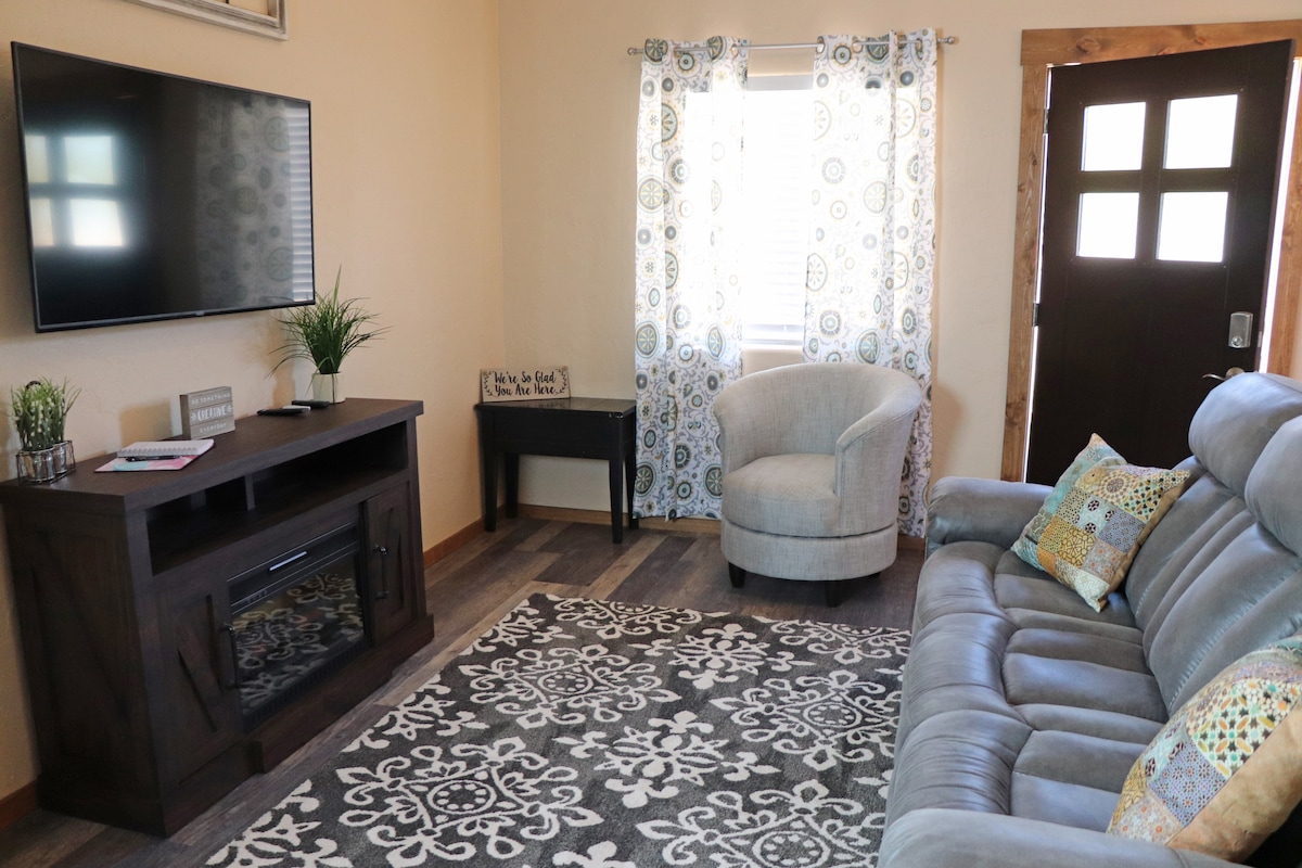 Enjoy a getaway on your way to Zion National Park, Sand Hollow Lake, Snow Canyon, Bryce Canyon, Grand Canyon, Lake Powell, Horseshoe Bend, Monument valley, Arches or Tuacahn. This cozy place has a Queen size bed, a couch pull out into a Queen size bed in the living area, and a Queen size blowup mattress. Right off the highway and next to shopping. Great hideaway experience at this cute one bedroom casita all to yourself with its own private entrance driveway and self check in.