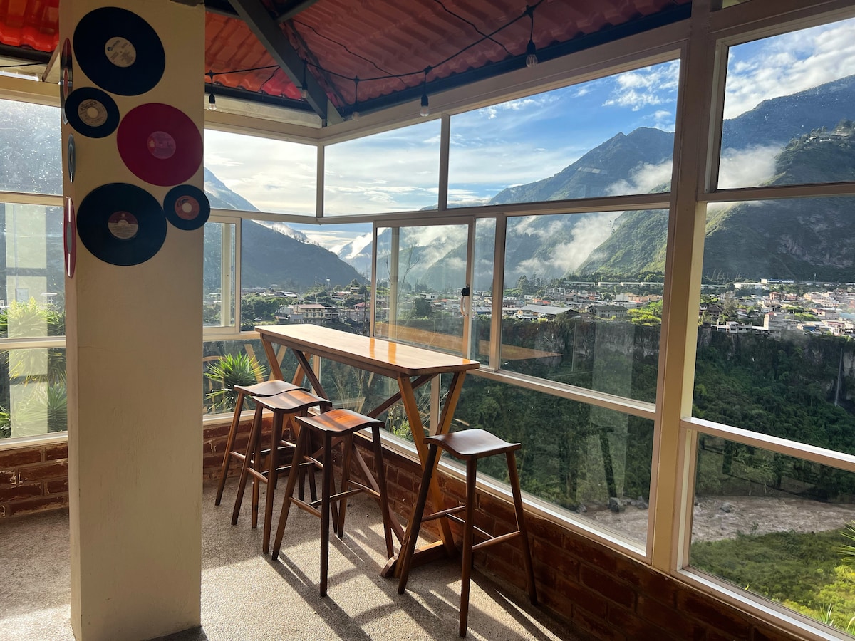Quiet place with incredible views and convenient location from Baños. Relax with your family or group of friends in nature near the city. 2 floors of the new house are completely at your disposal, 4 apartments with independent entrances.