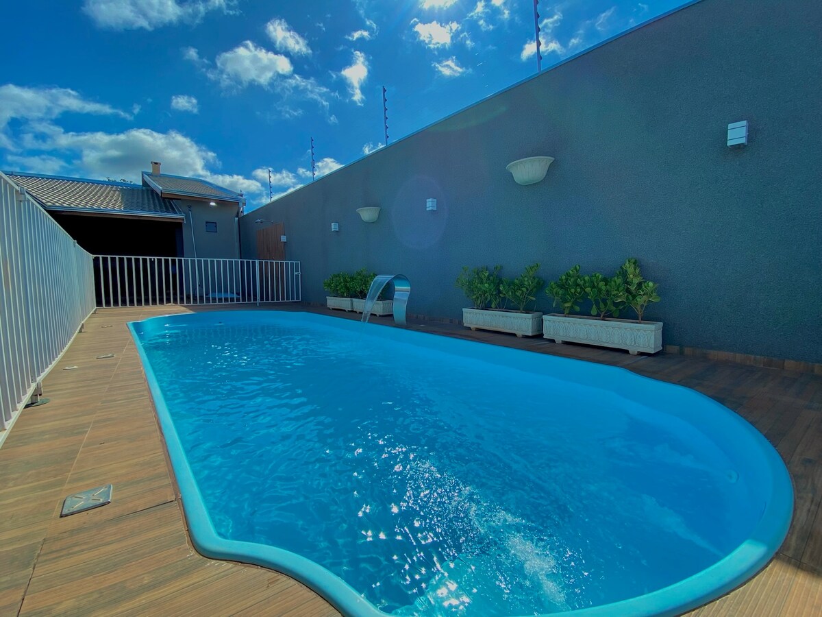 兩間套房、泳池、廚房和燒烤區,靠近大湖區和Paranazão河!