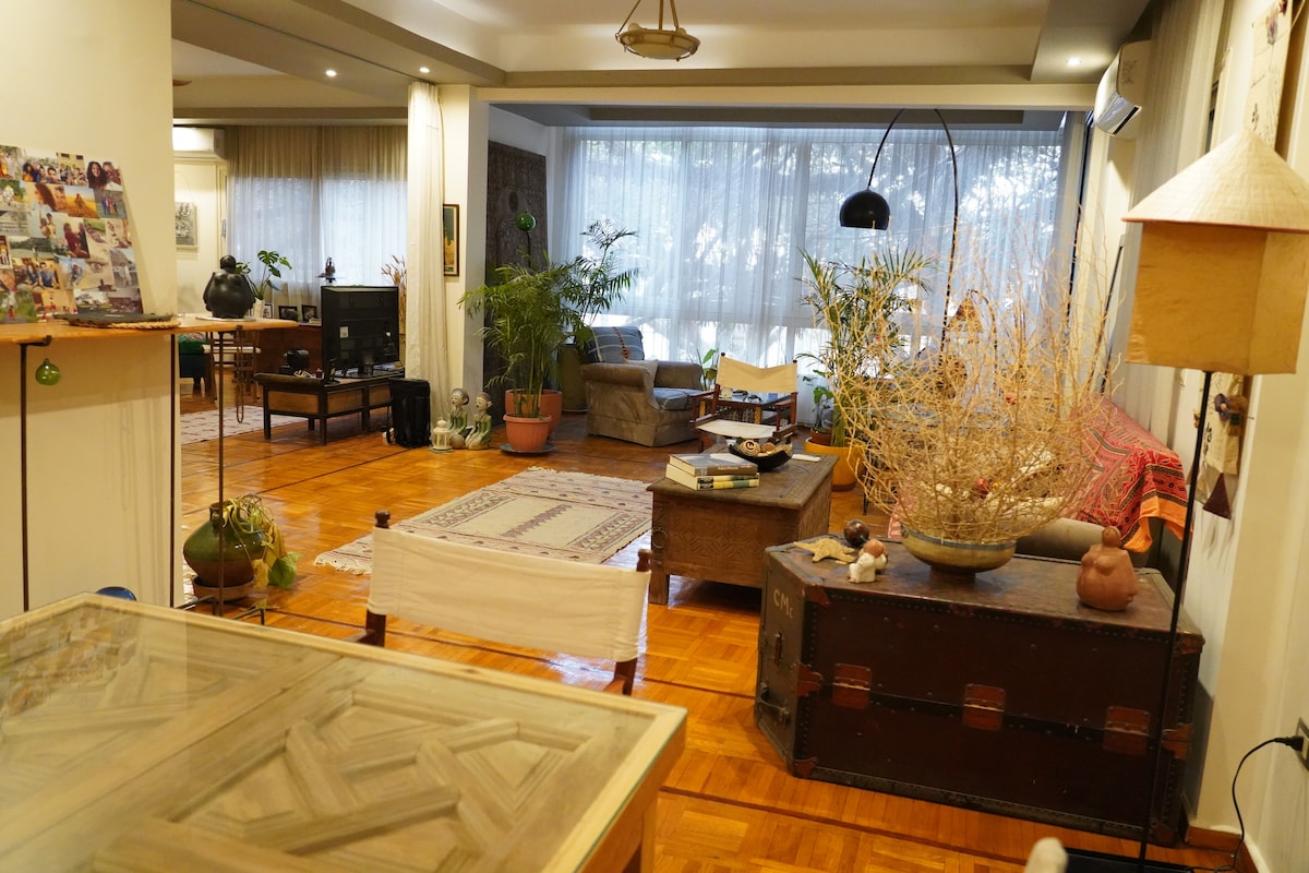 歡迎來到我們位於安靜、高級社區的舒適波西米亞風格公寓!享受明亮的空間,配有茂盛的植物、拼花地板和設備齊全的廚房。您可以使用 65 吋智慧電視放鬆身心,欣賞美麗的花園景觀。步行3分鐘即可抵達當地商店,20分鐘即可抵達市中心和埃及博物館,是舒適與便利的完美度假勝地!
