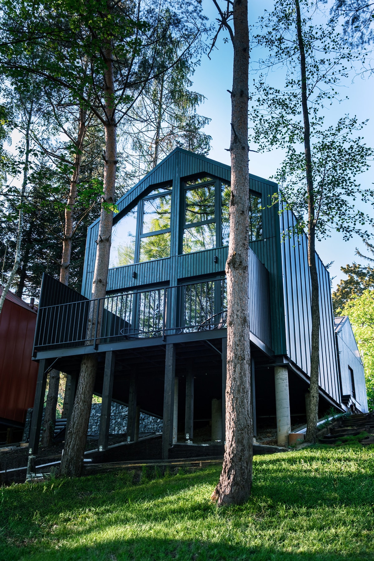 森林邊緣的現代寬敞室內裝潢,四周環繞著大自然。 如果你想在寧靜、放鬆的氛圍中度過時光(觀看投影機電影或在大自然景觀下放鬆洗澡),這是你的完美之選。 三間雙人臥室;一間寬敞的客廳,配有折疊式角落;一間設備齊全的廚房;兩間浴室、一個露台和一個夏季使用的室外熱水浴缸。 禁止大聲舉辦派對。 我們不接受男性團體。
