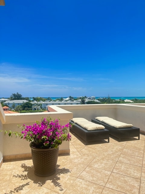 Peaceful Palm Trees with a peek of Ocean View! 10 min walk to the beach or 10 min drive to Grace Bay. Located on 2nd floor of the higher buildings, this condo is a spacious studio with Queen Bed, full kitchen, living room, bathroom, washer and dryer, Wifi and free parking. The large balcony has a pretty view over soothing palm trees dancing in the breeze, with a peek at the ocean in the distance. A great place for morning coffee or relax after long day at the beach or by the pool.