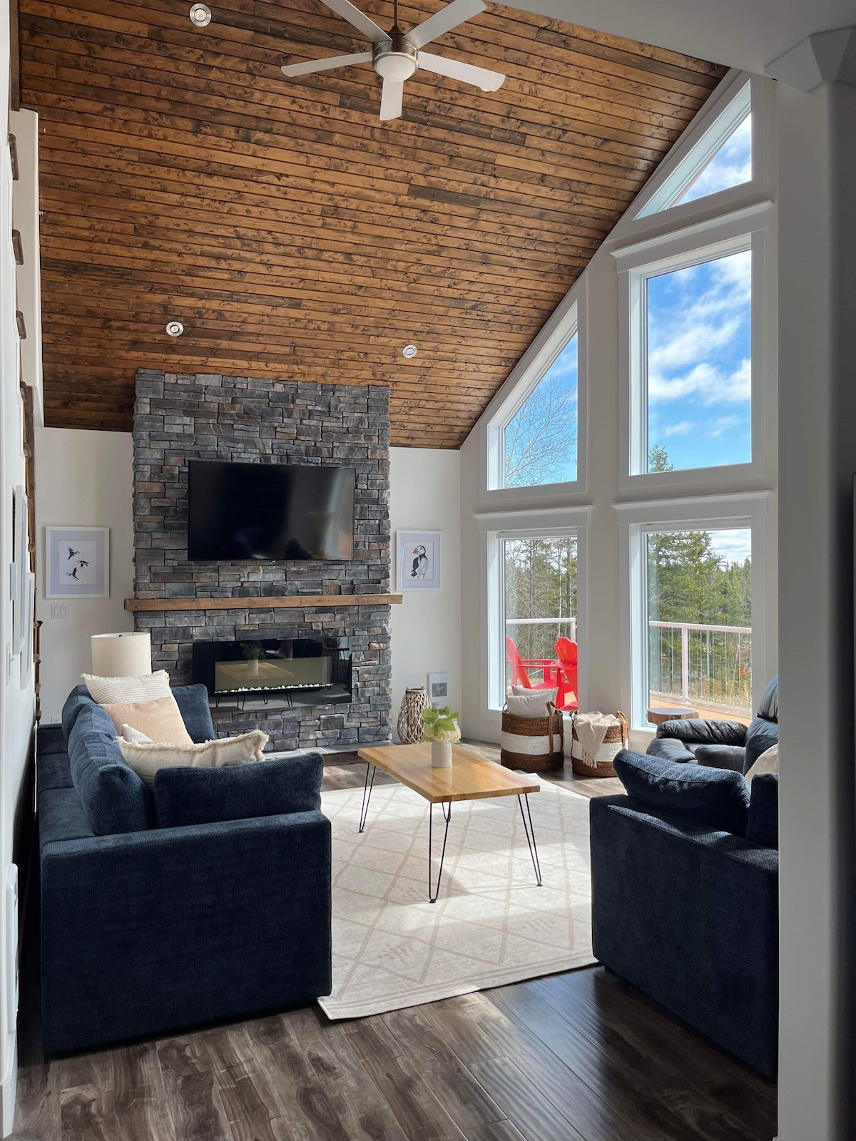 我們的A字型房屋寬敞、舒適、乾淨,坐落在美麗的Wiseman 's Cove避風港,距離Twillingate幾分鐘路程,坐落在海濱,可直接進入水域進行海岸線釣魚或漂浮/泛舟。我們的舒適房源擁有壯麗的景觀,配備一系列落地窗,可俯瞰水域和周圍的森林區域、戶外火坑、室內電壁爐、寬敞的臥室、設備齊全的廚房和用餐區,以及中央空調,可供冷卻/暖氣。