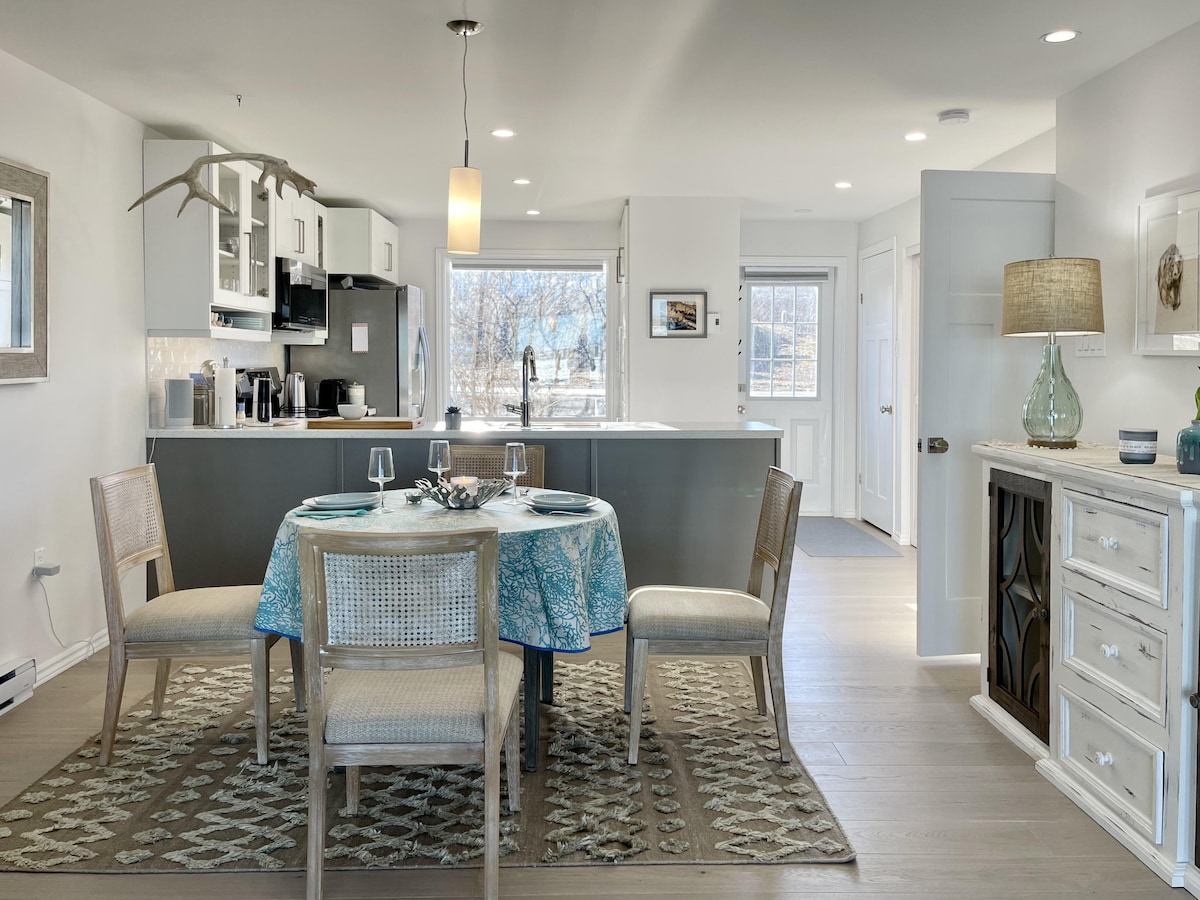 在這個安靜、僻靜又時尚的空間中好好放鬆身心。您一定會喜歡美麗的海景和令人驚嘆的日落景觀。提供燒烤、火坑。位於路易斯波特和特威林蓋特之間的中心位置。如果參觀Fogo ,靠近Farewell。距離私人海灘僅幾分鐘。私人車道。