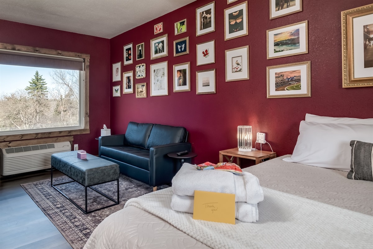 ✔ Queen Bed ✔ Mini Fridge, Microwave & Coffee Bar ✔ Living Area with Loveseat & Coffee Table ✔ Newly Remodeled Bathroom – Large Tiled Shower ✔ Less than 1 Mile from Downtown Prescott ✔ Free Onsite Parking