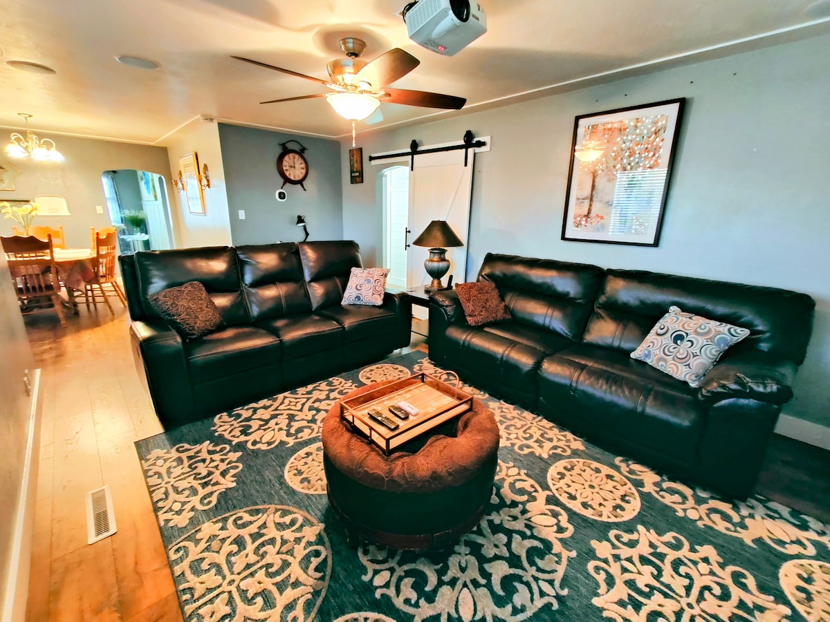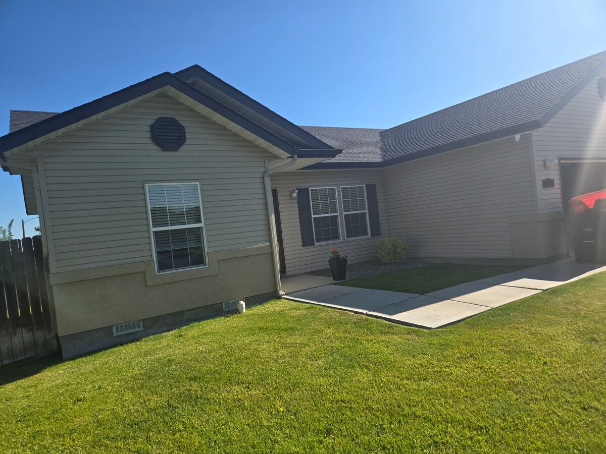 在這個寧靜的家與家人一起放鬆身心。開放式概念,有很多很好的座位可供接待和娛樂。非常新、舒適的房源,配有舒適的床和有圍欄的後院,配有火坑。您需要的一切都觸手可及。 地理位置優越,步行即可抵達湯姆森公園,靠近一切。市中心7分鐘,附近有觀光和雜貨店。一定要去看看佩林橋(Perrine Bridge)、肖松瀑布(Shoshone Falls),並停留在我們令人驚嘆的當地雙子瀑布市中心(Downtown Twin Falls),或者只是放鬆身心,享受美好時光。