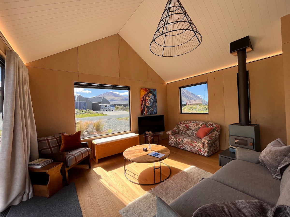 Skylark Cabin is a private, luxury escape, nestled serenely within the awe-inspiring landscape of the Mackenzie Region. Surrounded by soaring mountain ranges and the rugged, ethereal beauty of an expansive valley, this isn’t just a comfortable place to stay, it’s an experience in itself. Witness the mesmerising clarity of a starry night sky. Connect with nature and escape from the pace of daily life. Skylark Cabin is 10km to Twizel, 50-min to Mt Cook, 4hrs to Christchurch, & 3hrs to Queenstown.