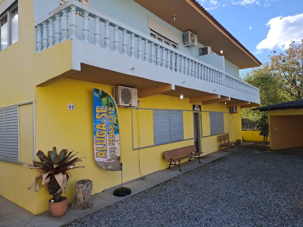 Localizado próximo às principais praias! Oferecemos utensílios domésticos básicos de cozinha (panelas, pratos, copos, xícaras, talheres)e todo o conforto necessário para a sua estadia. Ar cond. no quarto principal, e cadeiras de praia. Não possui máquina de lavar, tanque ou varal. Roupas de cama e toalhas não estão inclusas! Localização Á 350 mts localiza-se o ponto mais próximo de acesso ao mar . Próximo à mercado, farmácia, sorveteira e lojas. Vaga de garagem para 1 automóvel!