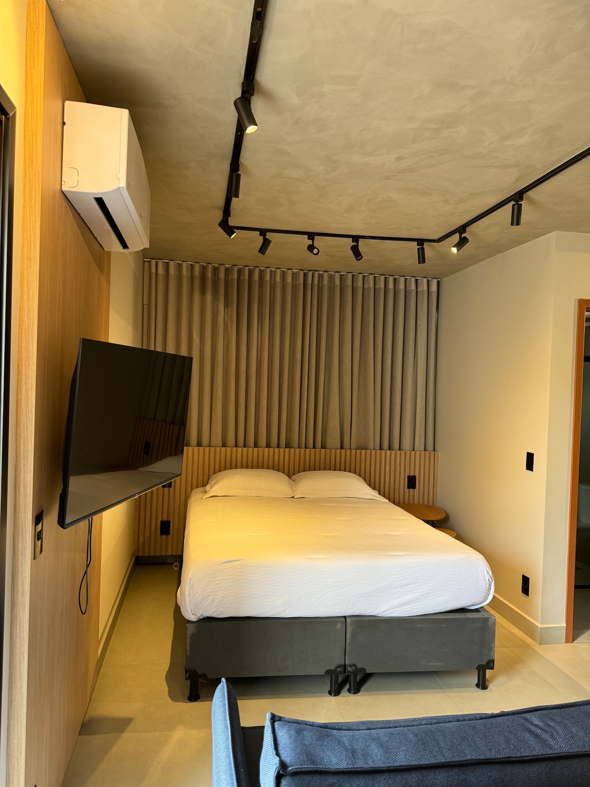 完整、現代和舒適的單間公寓—非常適合短期或長期住宿。寵物友善,配備高速網路、設備齊全的廚房(平底鍋、餐具和電器)以及可供放鬆的美麗景觀。公寓提供游泳池、洗衣房、健身房和24小時門衛,地理位置優越:靠近麵包店、藥店和雜貨店。專為追求舒適、實用和幸福的人設計的空間。