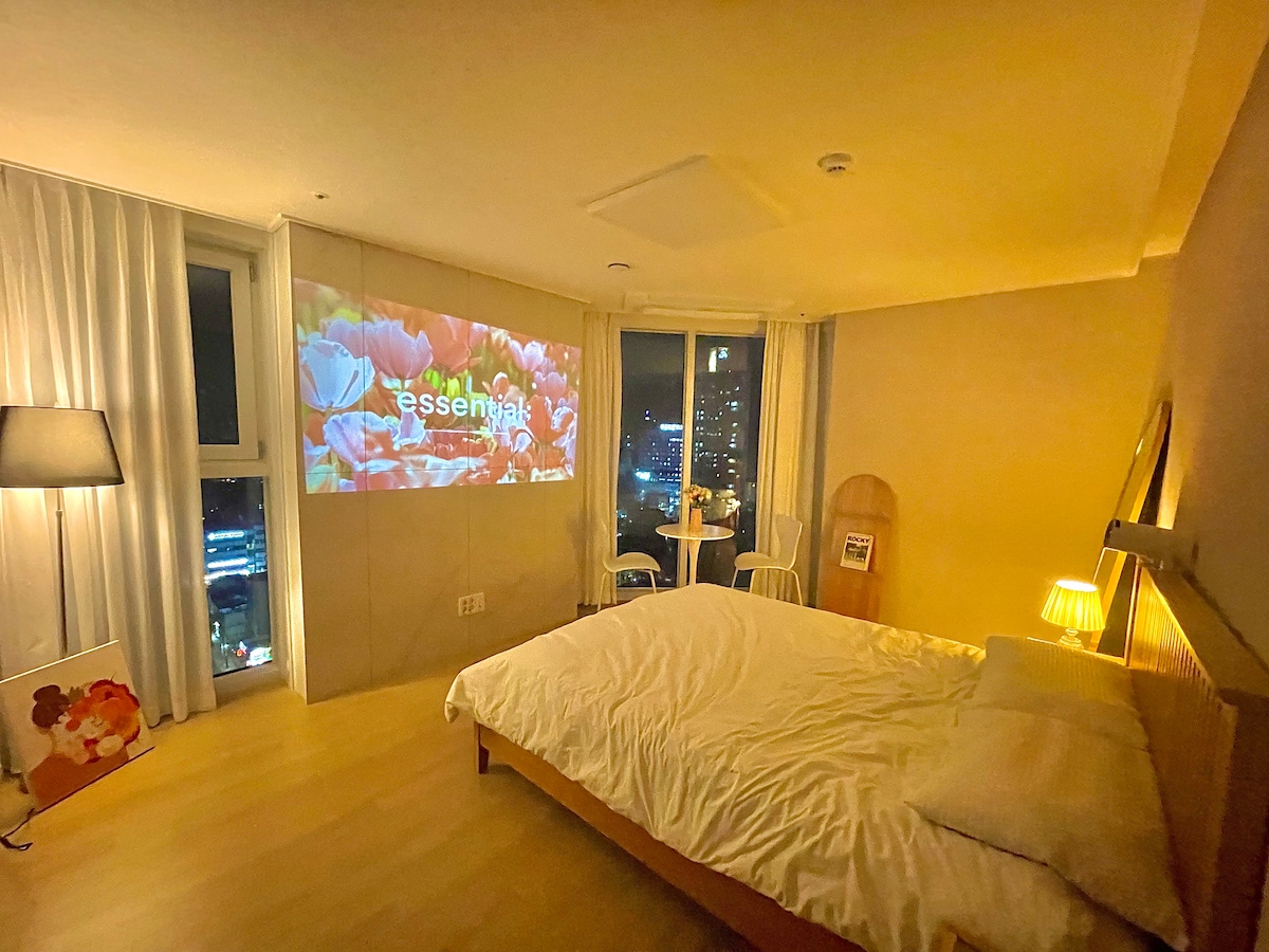 [์ด๋์๋์ : ์ทจํฅ์ ์ ์ ] ๋์ ๋จ๋ฉด ๋ฐ์น์ ํผ์ณ์ง๋ ๊ด์๋๊ต์ ํธ๋ฅธ ๋ฐ๋ค. ์ด๋์๋์ ์ ์ฌํ์ ๊ทธ ์ฐฐ๋์ ๋ฏธํ์์ ์์๋ฉ๋๋ค. TV๋ผ๋ ์๊ฐ์ ์์ ๋์ Marshall์ ๋ฐ๋ ๋์ ์ฌ์ด๋์ ํ๋ ์๋ฆฌ๊ฐ ๊ณต๊ฐ์ ์ฑ์๋๋ค. ๊น์ ๋ฐค์ ์์ธ ํ ์๊ณผ ์ผ๊ฒฝ์ ์์ฃผ ์ผ์ ์จ์ ํ ์ฌ์์ ์ฆ๊ฒจ๋ณด์ธ์. ๋น์ ์ ์ทจํฅ์ด ๊ฐ์ฅ ์ ๋ช ํด์ง๋ ์๊ฐ์ ๋๋ค. [Sensorial Ritual] โ ์ด์ยท์๋ฒ ๋ค ์ด๋ฉ๋ํฐ์ ์์์ ์ธ ์ค์ ์คํ์ง ์ ๊ณต โ ๊ด์๋ฆฌ ํด๋ณ๊ณผ ์๋ณ๊ณต์์ ๋ฏธ์์ ๊ณ์ ๋ ์ต์ ์ ์์น [Guide for Guest] โ ์ฒดํฌ์ธ 15์ / ์์ 11์ (์๊ฒฉํ ๋ฐฉ์ญยท์ฒญ๊ฒฐ ๊ด๋ฆฌ) โ ์ค๋ด ์ ๋ ๊ธ์ฐ ๋ฐ ์กฐ๋ฆฌ ๋ถ๊ฐ โ ์ต๋ 2์ธ ์ ์ฉ, ํํฐ ๋ถ๊ฐ (๋ฐ๋ ค๋๋ฌผ ๋ถ๊ฐ / ์๋ด๊ฒฌ ํ์) โ ๋ฏธ์คํฐ๋ฉ์ ํน๋ก ์ ์ฉ ๋ด๊ตญ์ธ ๊ณต์ ์๋ฐ ํฉ๋ฒ ์ ์ฒด ๋จ์ํ ์๋ฐ์ ๋์ด ๋น์ ์ ์ทจํฅ์ ๋ฐ๊ฒฌํ๋ ๋ฐ๋ ๋์ ์๊ฐ์ด ๋๊ธธ ๋ฐ๋๋๋ค. ์ง๊ธ, ๋น์ ์ ๊ฐ๋๋ฅผ ๊นจ์ฐ๋ ๋ถ์ฐ์ ์ด๋ ์๋์ ์ ๋จธ๋ฌผ๋ฌ ๋ณด์ธ์.