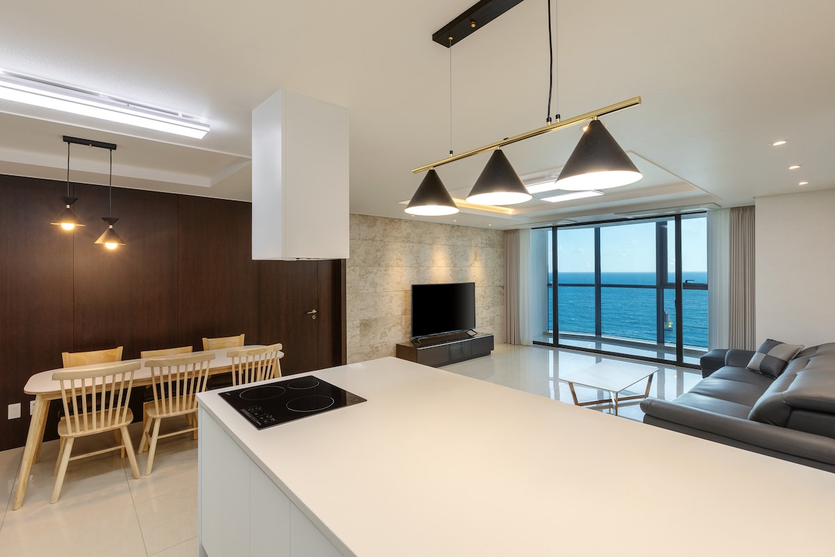 Ocean view with the best beauty in Korea !!! You can enjoy sunrise and sunset at the same time, and the clear air of your heart, the sound of the waves crashing on the rocks, the sea shining in the moonlight, the floating boats at night. Also, You can enjoy spa in the bathtub reminiscent of a pool villa, and the interior space made of hotel-grade materials. ๋ณธ ์์๋ ๋ฏธ์คํฐ๋ฉ์ ํน๋ก๋ฅผ ์ ์ฉ๋ฐ์ ๋ด๊ตญ์ธ ๊ณต์ ์๋ฐ ํฉ๋ฒ ์ ์ฒด๋ก ๋ฑ๋ก๋์ด ์ด์๋๊ณ ์์ต๋๋ค