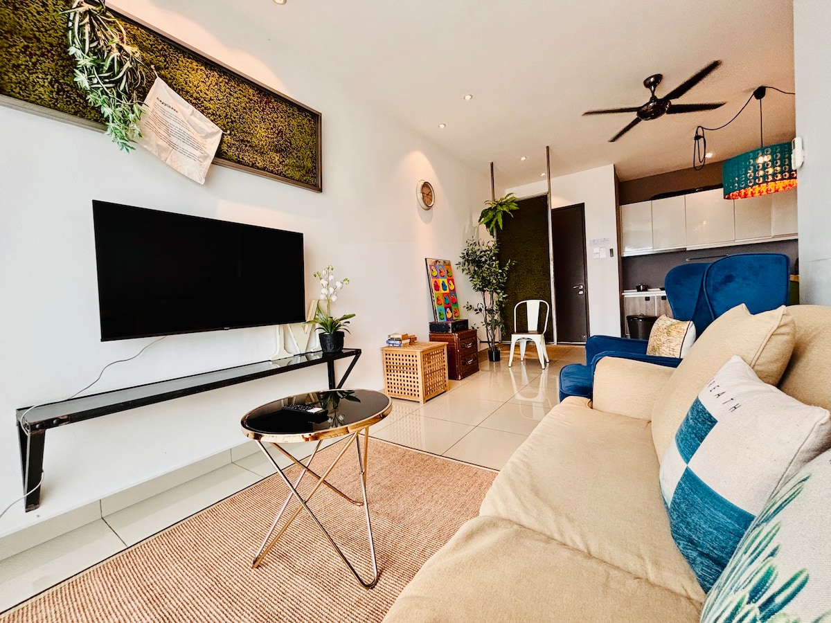 Just a 2-min walk to Ipoh water park . Our cozy 2-bedroom unit fits 5–6 guests and offers full air-conditioning (including the living room), Smart TV with YouTube, water dispenser, microwave, and free WiFi. Enjoy stunning views of the mountain and water park. Comes with 2 free parking spaces. Great for family trips or friends’ getaways – comfort, location, and convenience all in one place