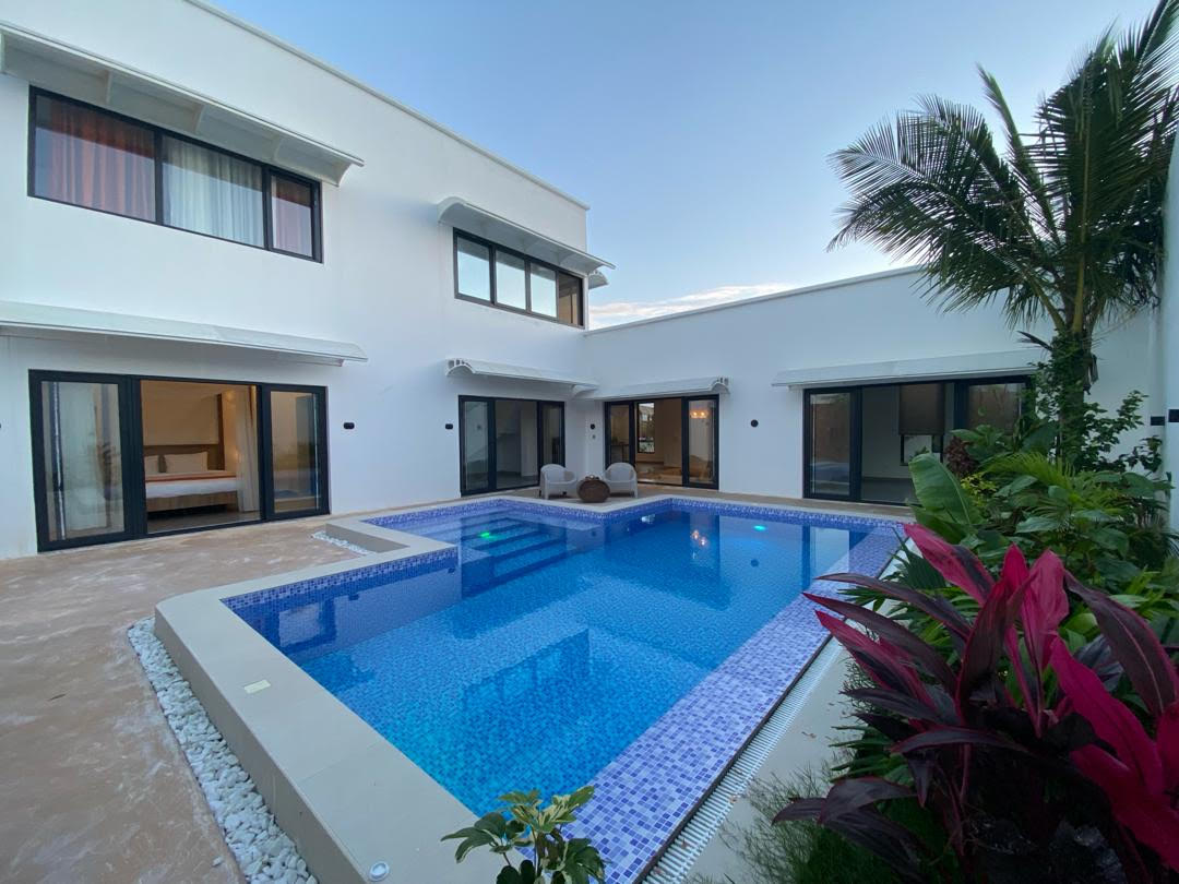 Sunny Palms Beach Bungalows Zanzibar is the most ideal venue for your vacation and weekend getaway . Resort features 21 luxurious villas and Villas with Private Pool at one of the fabulous beachfront locations in Zanzibar. All villas has a spacious living room, dining area, 65 inch Smart TV, minibars with freezer, tea & coffee making facility and many other amenities to indulge you. No breakfast inleaded, city tax $4 per night per head to be paid extra