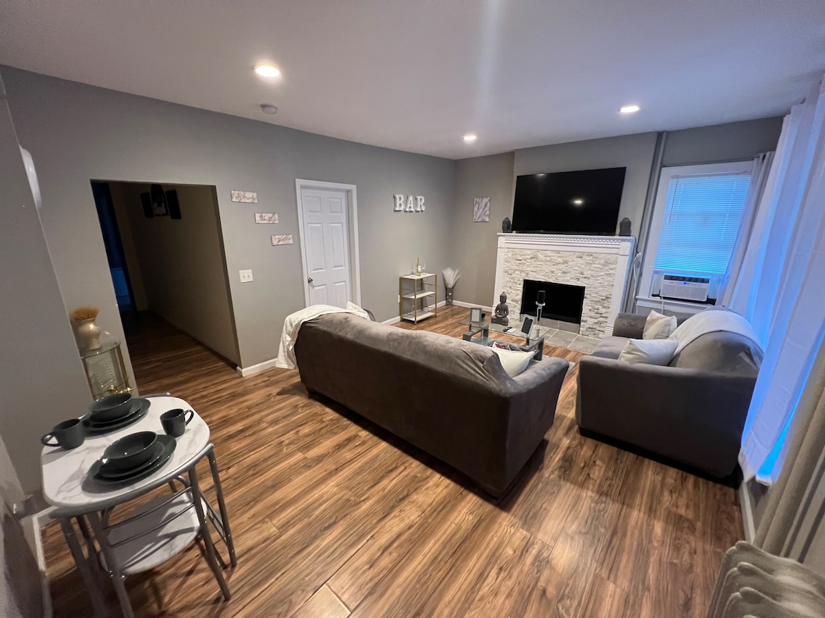 Blueprint是一間舒適的3居室公寓。 房源經過全面翻修。 整個起居室、餐廳和廚房都有硬木地板。 提供清潔用品。3間寬敞的臥室。 主臥室有兩張雙人牀、全尺寸牀和雙人牀。 樓上的浴室優雅,採用單色藍色的裝飾。 最後,還有一個封閉的門廊可供吸煙。 廚房配備了所有更新的電器,還有電壁爐!