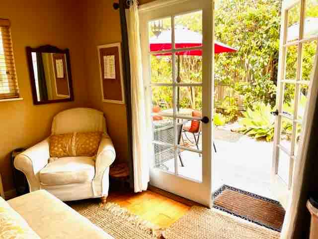 我們的私人單間公寓非常適合需要安靜工作場所的情侶或單身專業人士。 單間公寓配有一張大牀和一張雙人牀(腳輪牀來自圖片中的雙人牀下方。 獨立浴室和後院的通道,有些房客用它來做瑜伽、冥想和孩子們四處奔跑 開車前往市中心和/或主要海灘需10分鐘。 包括一輛車的私人停車位。 距離徒步道、UCSB、海灘等地僅幾分鐘路程。