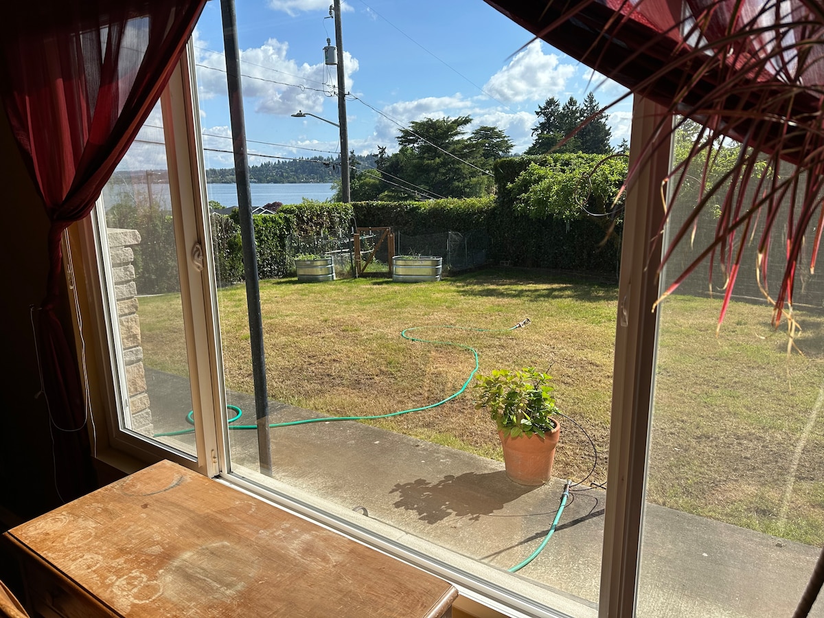 造訪西雅圖?需要設備齊全的廚房,靠近雜貨店?關心美學?這房子適合你。選擇在輕盈的枝形吊燈(黃色牆)下的豪華雙人床,或是被書籍和工藝品(紅色牆)包圍的更堅固的全尺寸床。在客廳放鬆身心,享受更多不拘一格的設計。在連接Apple TV的投影機上觀看您最喜愛的媒體。在前院享用晚餐。現場停車,提供電動車充電器-太陽能抵消。