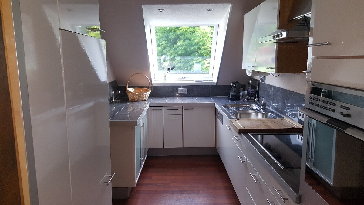 歡迎來到黑森林的中心!我們位於 Unterkirnach 的新裝修公寓可容納 4-5 人,配有設備齊全的廚房和可欣賞美景的陽臺。亮點:溫水泳池和桑拿房(桑拿房需額外付費)非常適合在惡劣天氣中玩水或在「遊戲倉庫」(5 分鐘路程)玩耍的家庭。附近有各種設施(超市、餐廳等)。Villingen-Schwenningen (15 分鐘) 體驗大自然,放鬆身心!