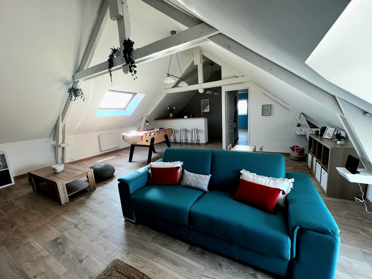 L'ancien atelier de notre bâtisse rénové en appartement cathédrale offre une vue incroyable sur la campagne normande. En famille ou entre amis, vous pourrez admirer le coucher de soleil sur les champs de blé ou de lin selon les saisons. Vous pourrez vous ressourcer ou tout simplement profiter d'un moment de détente. Il est temps de se créer des souvenirs! Bonheur et épicurisme sont de rigueur au gîte « L'Atelier de Louis" meublé de tourisme classé****