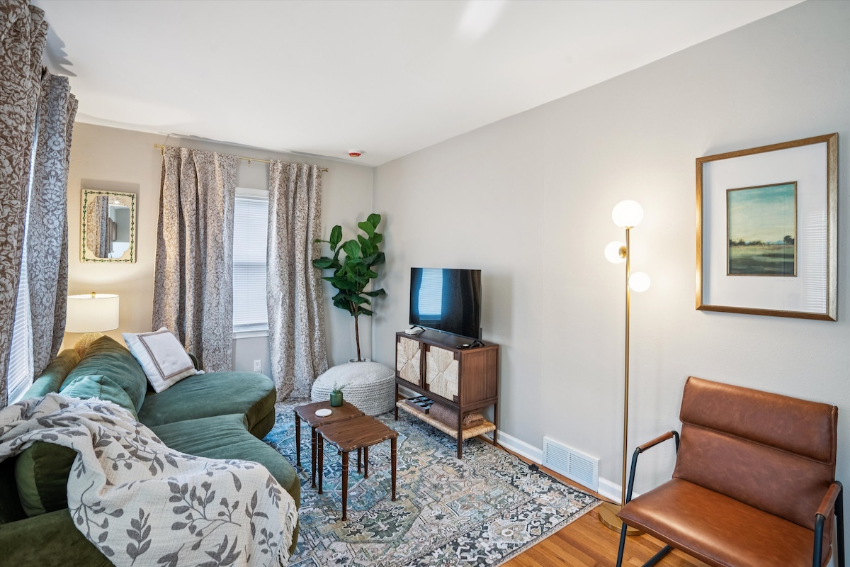 歡迎來到Effortless Landing ! 我們超級乾淨舒適的波西米亞風格度假屋。 私人無鑰匙入口,街邊停車位。 享受一張大床、額外的沙發床、當地咖啡和所有設施,如光纖WiFi、電視、床單、全套廚房和洗衣房。 將這一點加上得梅因市的美妙環境,在一個安靜、位於市中心的街區。 位置方便,距離得梅因國際機場4分鐘路程,距離得梅因市中心7分鐘路程!