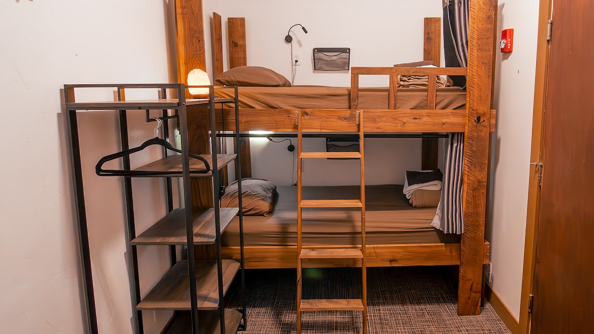 關於此空間 帶上你的團隊!此旅居是整間6床位雙層床房的私人出租。 這是滑雪旅行、單身派對或想住在一起而不分開酒店房間的朋友團體的終極經濟實惠選擇。 您可以享受自己鎖定房間的私隱,僅供您的團體使用,並結合Park City頂級精品旅舍的社交氛圍和高端設施。