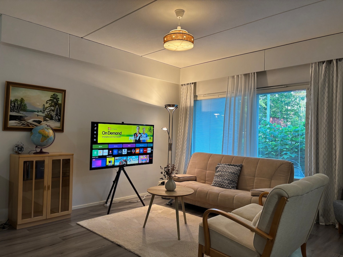 My place is warm and homey, newly renovated (2017). It is 3,5km from city center and bus stop is 100m from here. Nearby there is forest and running tracks. There is a supermarket a pizzeria and restaurant 200m away. The area is quiet and child friendly. Free parking available.