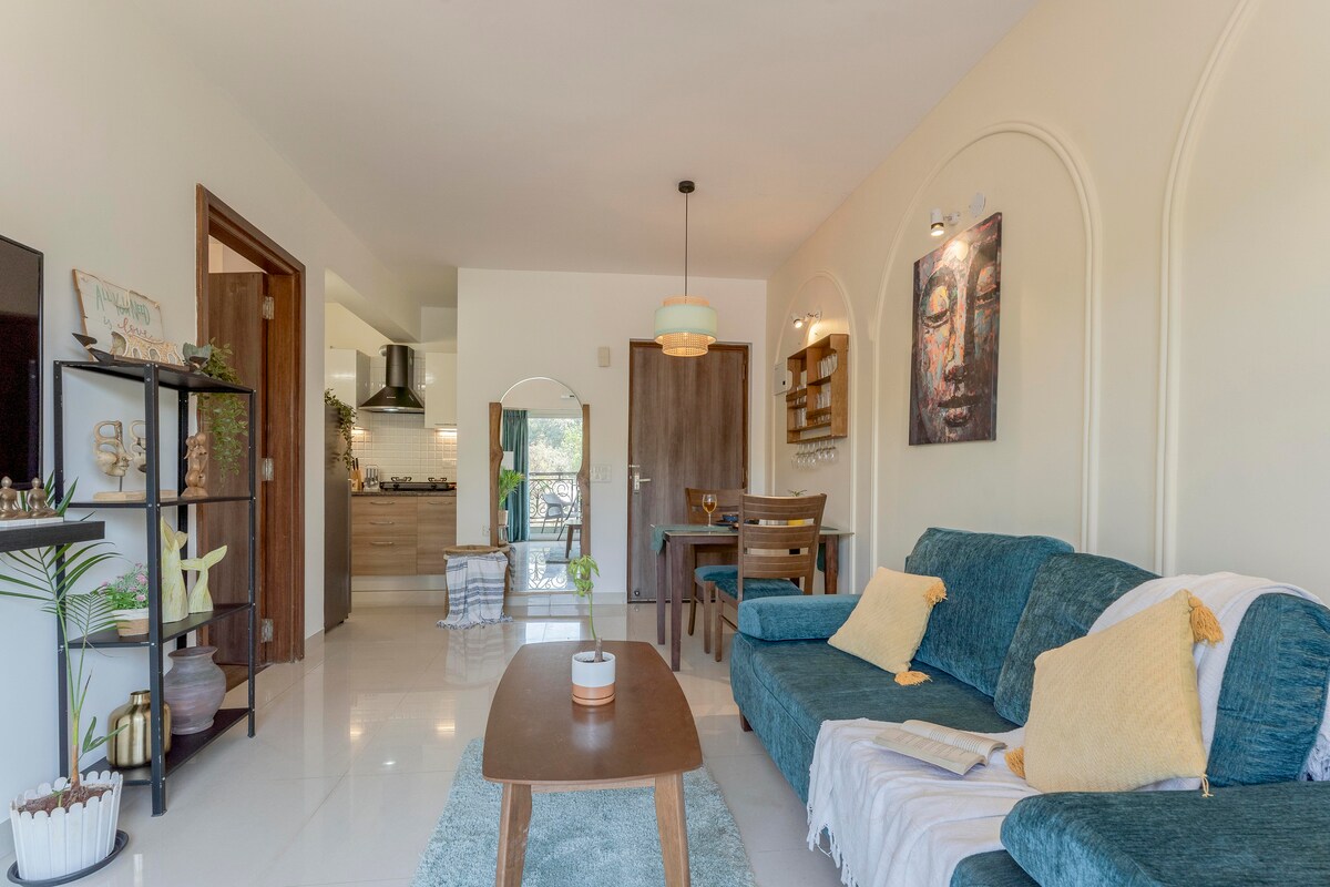 這間舒適豪華的一樓設備齊全的1BHK位於北果阿邦的Assagao,位於一個有24小時保安和每日客房清潔的門禁社區。 公寓距離Anjuna和Vagator海灘僅10分鐘車程,毗鄰Soros -村莊酒吧。 公寓有兩個WiFi高速網路連線、功能齊全的廚房、遊泳池、免費停車位、變頻器和洗衣機。 步行即可抵達Pablos、Atjuna ,開車前往Bawri、jamun、Mustard咖啡廳僅需5-7分鐘