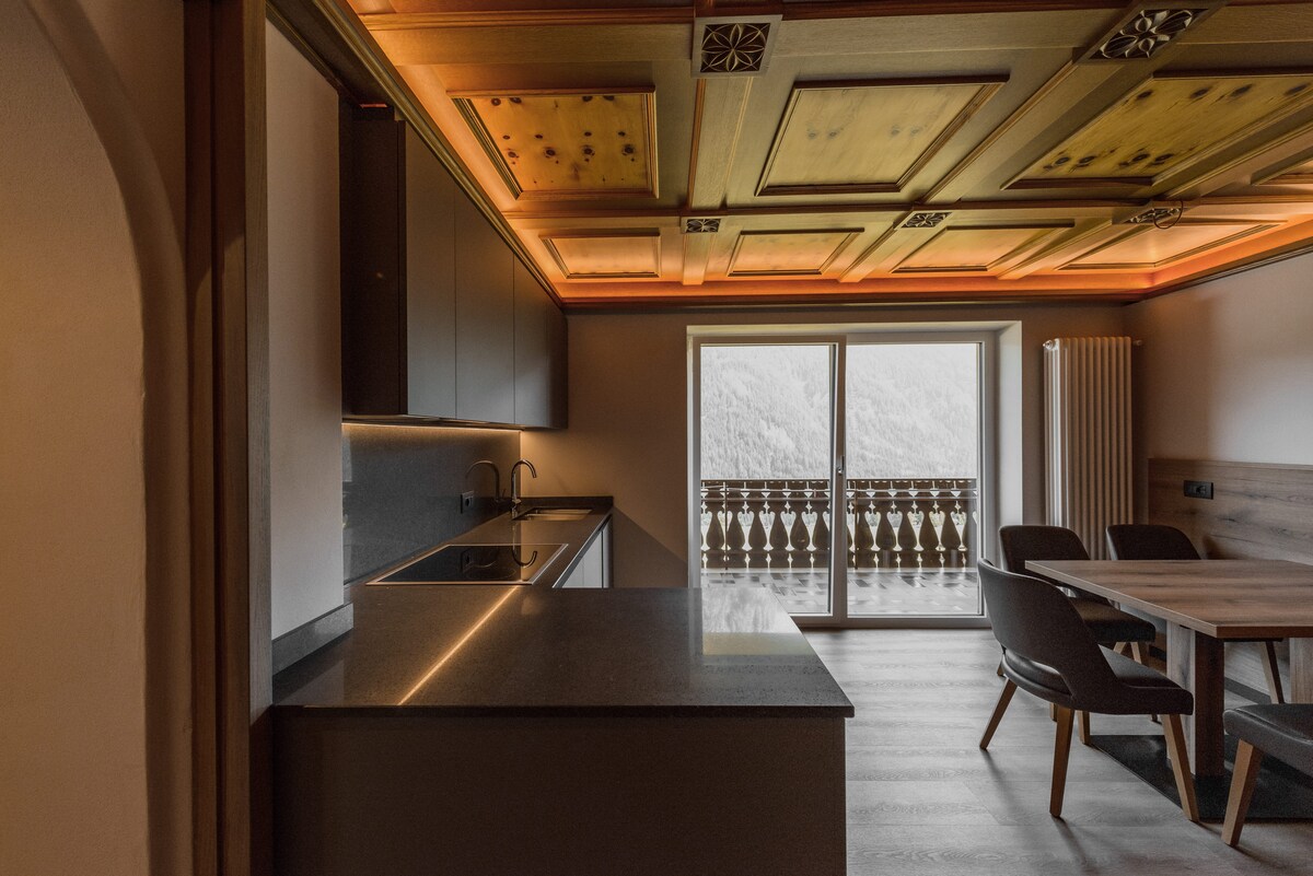 新翻修的Mansard。天然木材的開放空間,頂部有11個大屋頂窗戶。 舒適地坐在沙發上,您可以欣賞森林、岩石和星星。 Mansard已使用珍貴的材料進行了全面翻新,並配備了許多智慧小工具。公寓位於法薩山谷(Val di Fassa)中心安靜、陽光充足的全景住宅區,靠近森林,距離主要購物區和Sellaronda滑雪纜車3公里。 CIN : IT022113C2RUCHO5AY