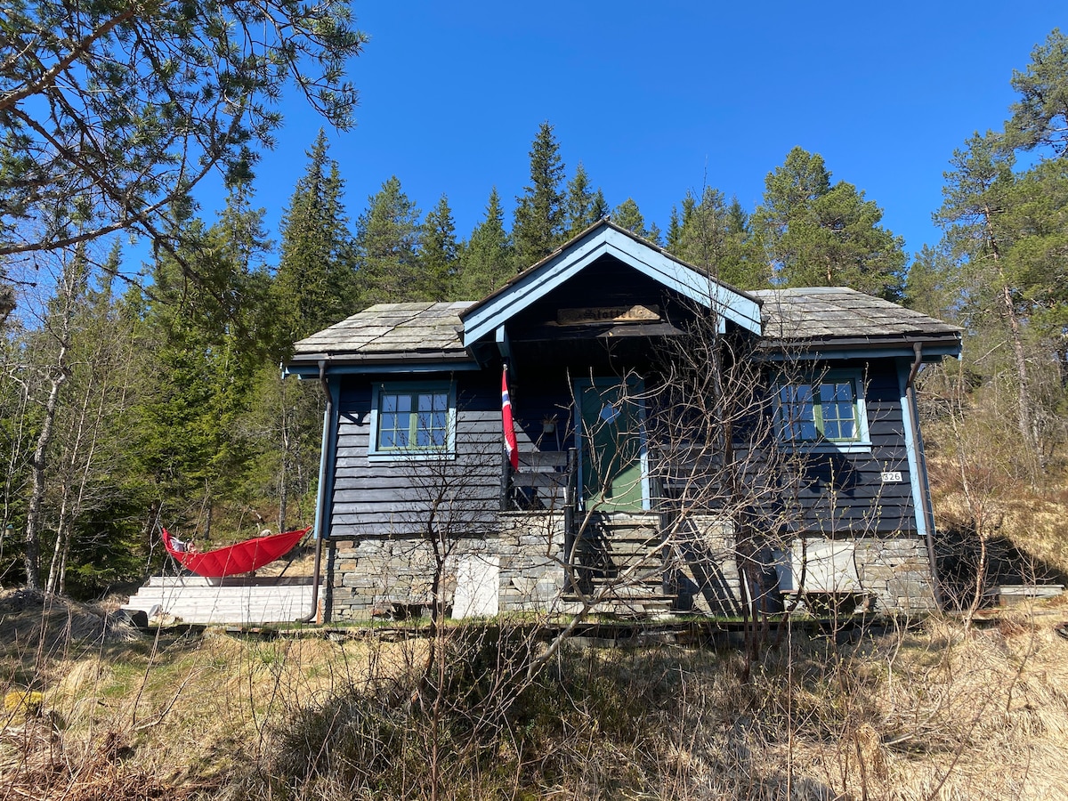 Cosy cabin with camping toilet and wash pot. Lies by a scenic part of the famous Bergen railway. Welcome to our secret fjord hideaway for an authentic experience close to nature. No luxury, but you wake up to the sound of seagulls and jumping salmon. Take a refreshing bath and eat your breakfast by the stream. Relax in a hammock between birches, hike in the mountains and contemplate by the bonfire at night. We sincerely want to share this beauty and harmony with you. We are happy if you are!