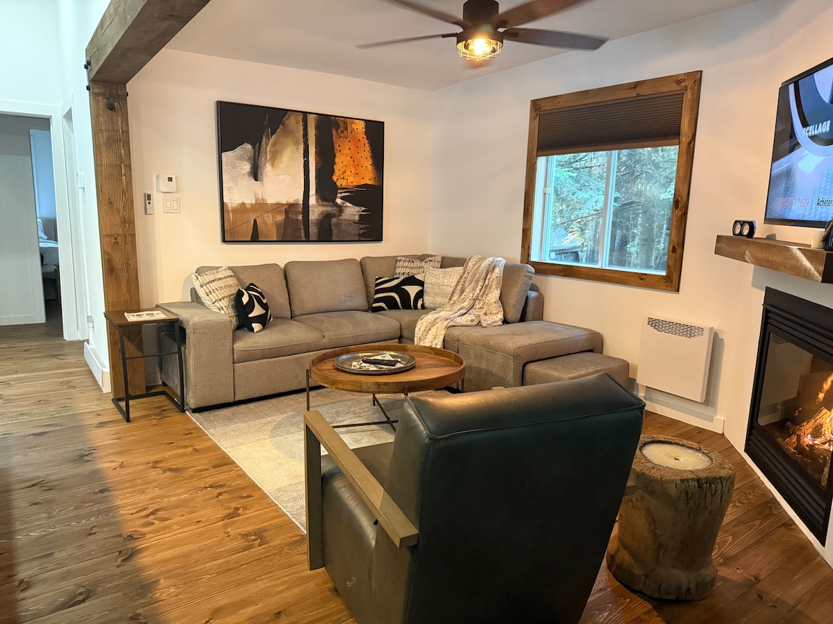 Bienvenue à l’Auberge des Pins! Découvrez un chaleureux loft moderne entièrement équipé, situé à l’étage supérieur de l’auberge. Profitez d’une vue imprenable sur le lac et les montagnes dans un espace à aire ouverte conçu pour le confort et la détente. Vous aurez accès à une plage privée, un balcon privé côté lac, une cuisine complète, la climatisation, un foyer électrique, le wifi, la télé avec câble, une douche parapluie, un BBQ, ainsi que 2 kayaks exclusifs en été.