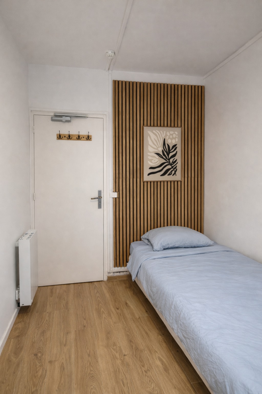 9平方米的私人酒店房間,非常適合獨自或專業住宿。 舒適的單人床、獨立浴室(淋浴間+廁所)。 冰箱、微波爐。 2 📍 分鐘即可抵達地鐵站 🎤靠近法蘭西體育場和大教堂 🚇 21分鐘聖拉扎爾(Saint-Lazare)– 28分鐘夏特勒(Châtelet)