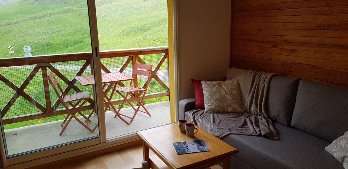 來探索這個大型T2,家具齊全,地理位置優越,位於度假村的中心,可直接通往斜坡(從200米外的Garibeuil軌道出發)。 這間公寓面向南方,可欣賞山景。 您也可以來到住宅的私人溫水泳池放鬆身心(僅在學校假期開放,萬聖節除外)。 您可以使用地下室的停車位和私人滑雪儲物櫃。
