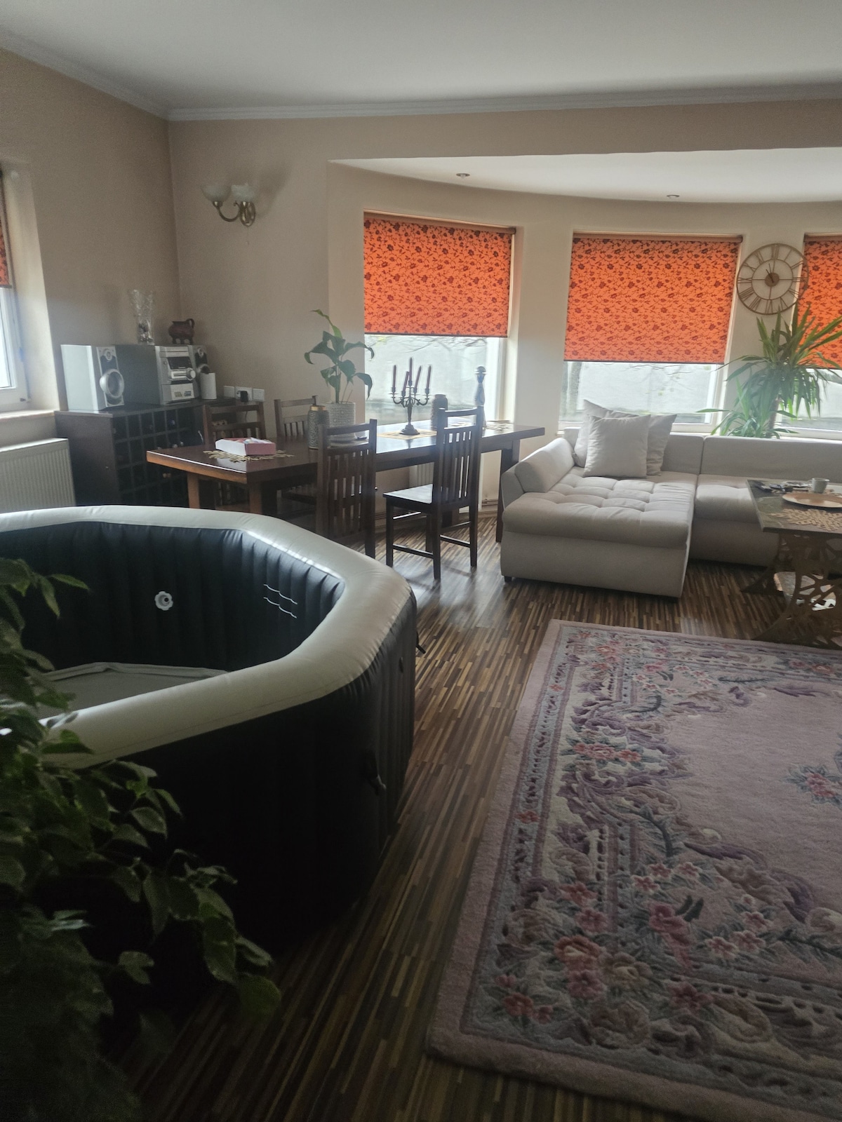 這間一房獨立屋雖然位於市區,但周圍有綠色山丘和鳥鳴聲。在它前面,您會發現一個漂亮的露臺,可以在一天結束後放鬆身心。夏季,孩子們可以在院子裡找到一個彈跳床和一個平面泳池,全年都有鞦韆。附近有許多步道,您可以從上面欣賞整個城市。
