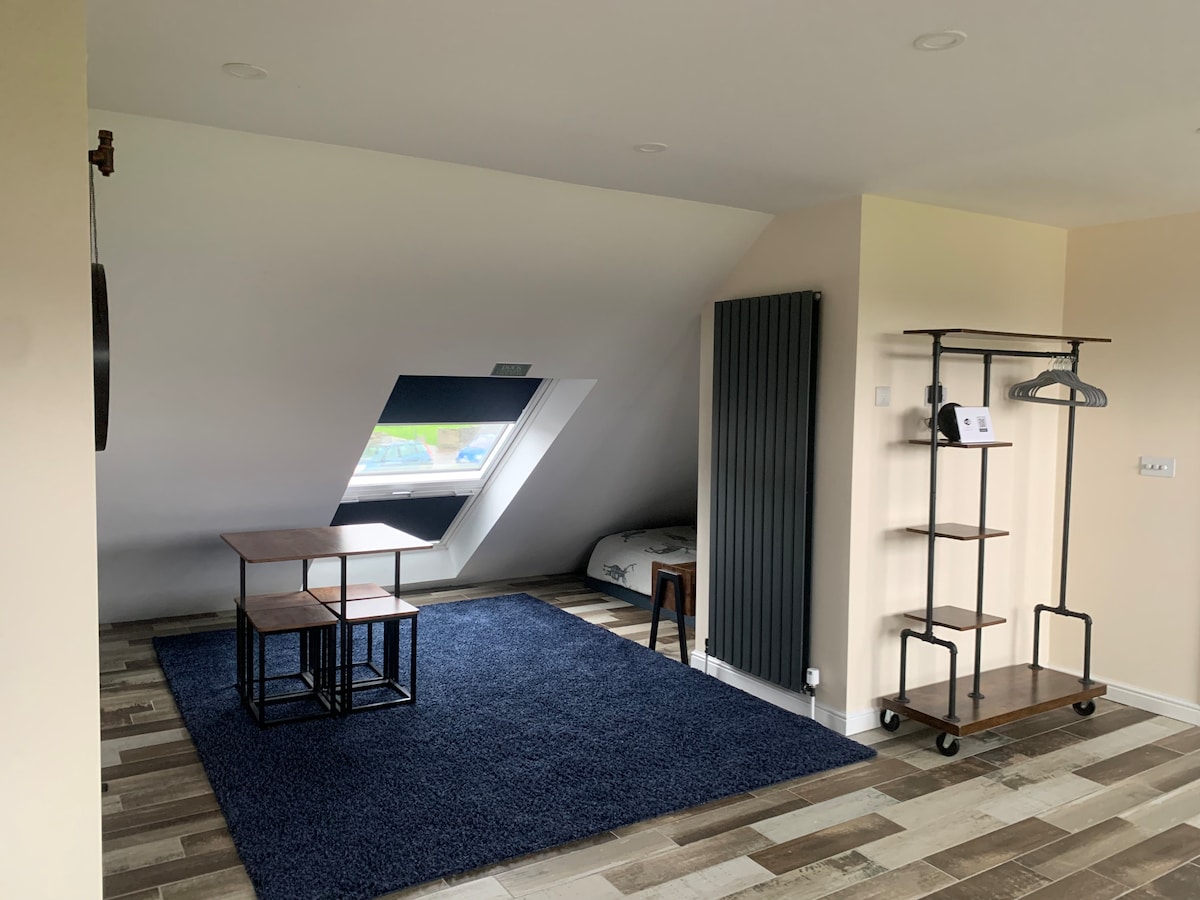 我們花園後面的戶外廁所已經被精心改造成舒適、現代的單間公寓。配備地暖、大沙發和廚房/早餐區,配備短期或長期住宿所需的一切!獨立入口也使其私密,因此您可以隨意進出。 如果您想預訂,請先查看我們的《房屋守則》。