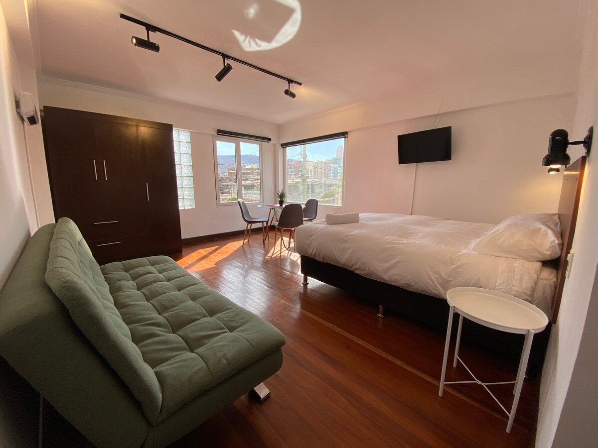 Discover Sopocachi from my sunny apartment! Steps away from supermarkets, restaurants, gyms. Includes bedroom, bathroom, fully equipped kitchen, cozy living room. Stay connected with Smart TV, Wi-Fi. 24/7 security, exclusive building access. Continuous assistance during your stay. Book now for an authentic experience in this vibrant neighborhood! We look forward to welcoming you!