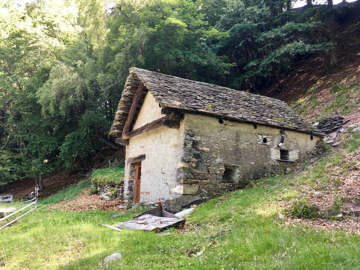 An oasis of peace in the Southern part of the Swiss Alps, a house in Nature. A place to find time and oneself. A stone's throw from everything. All the interiors are in the wood, there is a wood stove, a new kitchen, a big table inside, and an even bigger one outside in the courtyard. You are going to be all by yourself. 4 rooms, 3 Single bed + 3 double bed.