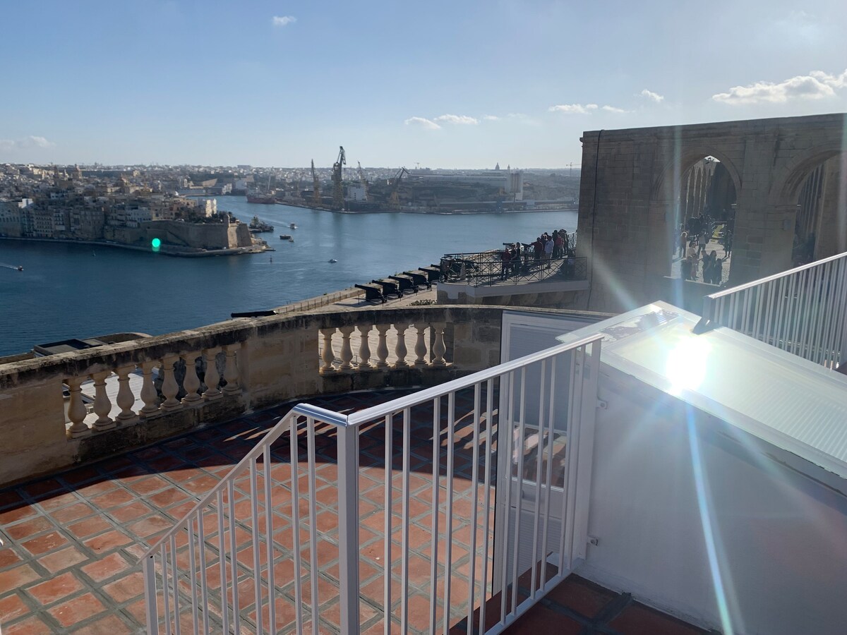 此公寓位於歷史建築的三樓,可欣賞大港口及其他景點的無與倫比景觀。該物業曾是馬爾他著名的中世紀藝術家 Emvin Cremona 的住所和工作室。 亮點是40平方公尺的大型私人露臺,您可以在那裡放鬆身心,欣賞壯麗的景色! 這裡也是探索瓦萊塔的完美基地,附近有許多文化景點、餐廳和咖啡廳。