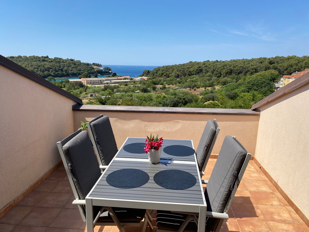 Pula Bay View公寓位於羅馬圓形劇場(競技場)附近,有一個可愛的小露臺,可欣賞城市舊區和Pula灣的美景。 公寓已經完全翻新,配備了新家具和我們想創造「像在家一樣」的氣氛的細節 附近有咖啡館、餐廳、商店、長廊和嚴格的市中心,有一條通往市內最著名的論壇廣場的主要街道。 .