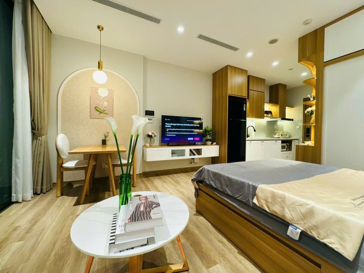 -溫泉生態公園熱礦物分區的1BR公寓;天鵝湖中央公園對面:露營/皮劃艇/燒烤/日本花園。 -房間內有浴缸和投影機。 -水電費:該地區的02鹽電解質泳池價格為120,000越南盾-130,000越南盾/次;免費健身房。 在森溫泉預訂熱礦物質門票可享五折優惠。 -熱門:預訂5晚或以上(不包括其他優惠),即可免費獲得02 Mori溫泉熱礦物浴門票(在星期二至星期四的9.00-13.00時間範圍內使用)。