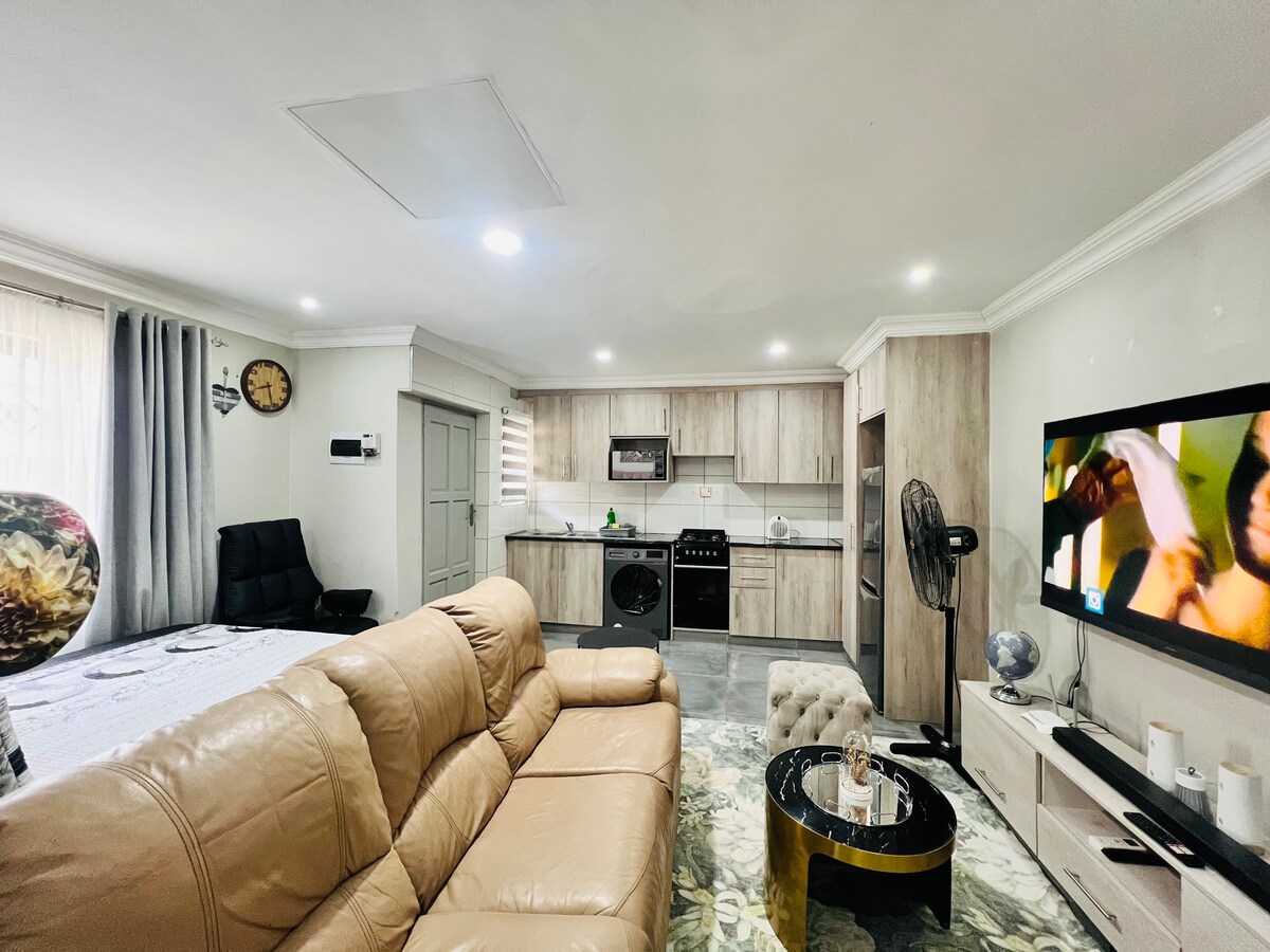 Our modern shortlet is designed with your comfort and convenience in mind. You’ll enjoy a stylish space that feels like home, with thoughtful touches to make your stay relaxing. The apartment is located in a secure area with easy access to all major routes, making it perfect for both business and leisure travelers. ✅ Modern and cozy interiors ✅ Fully equipped kitchen for self-catering ✅ Air conditioning, unlimited WiFi, Netflix, Supersport ✅ Safe and secure environment ✅ Close to shopping,dining